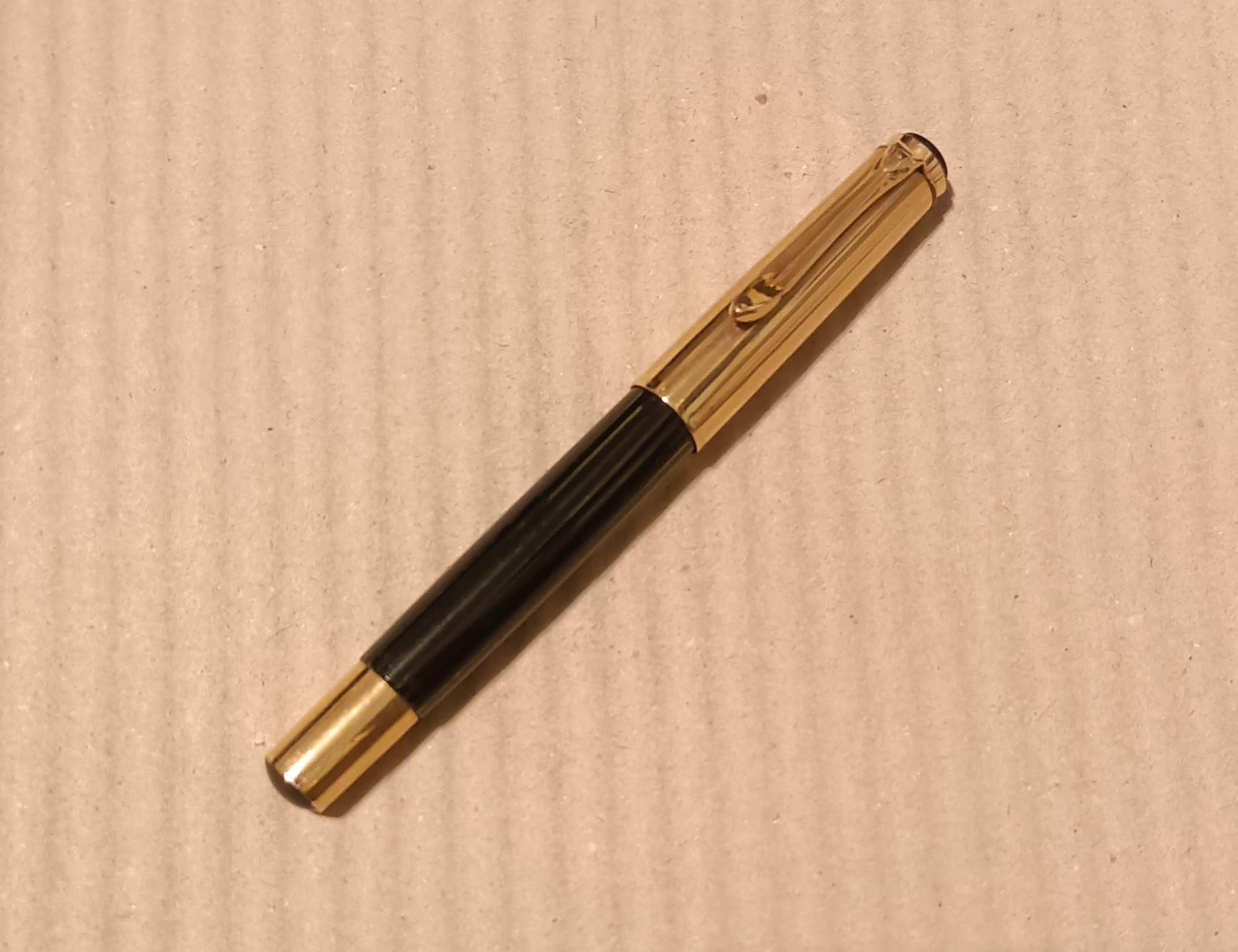 Due verette dorate (tipiche della linea Souverän post 1997) e un sommita leggermente arrotondata con il simbolo pelikan inciso è bellissimo. Peccato che la Pelikan non abbia avuto il coraggio di usare questo cappuccio sulla linea Souverän. Il coraggio l'ha ritrovato con la M7000 per un istante ma essendo una capostipite che non ha avuto seguito non credo che la si possa prendere come espressione di una nuova tendenza di stile per la linea Souverän.