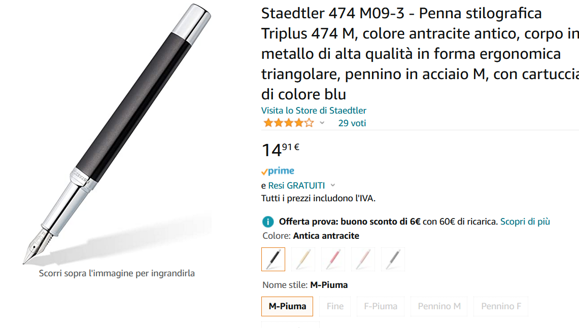 STAEDTLER TRIPLUS SU AMAZON: affiliazione commerciale non indicata a 14,91