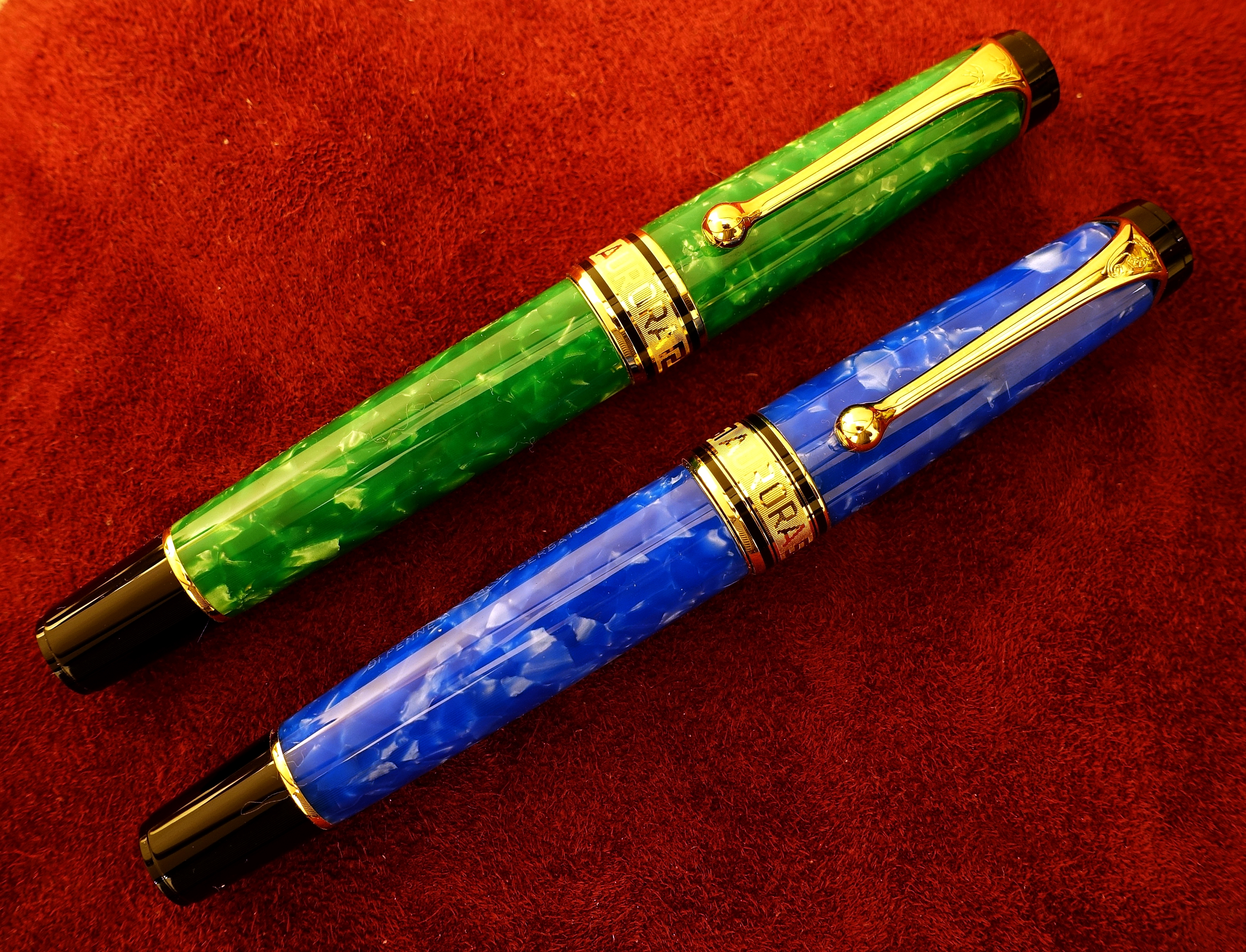 Qualche giorno fa ho comprato una Aurora Optima verde serie Primavera e, ne sono rimasto impressionato da tanta bellezza. La stessa venditrice nel ringraziarla dell'ottimo acquisto fatto, ha pensato bene di propormi anche una Mare, come è possibile resistere a penne come nuove inchiostrate una sola volta per curiosità a prezzi che non dico perchè mi sembrano regali di Babbo Natale ? Impossibile... :D