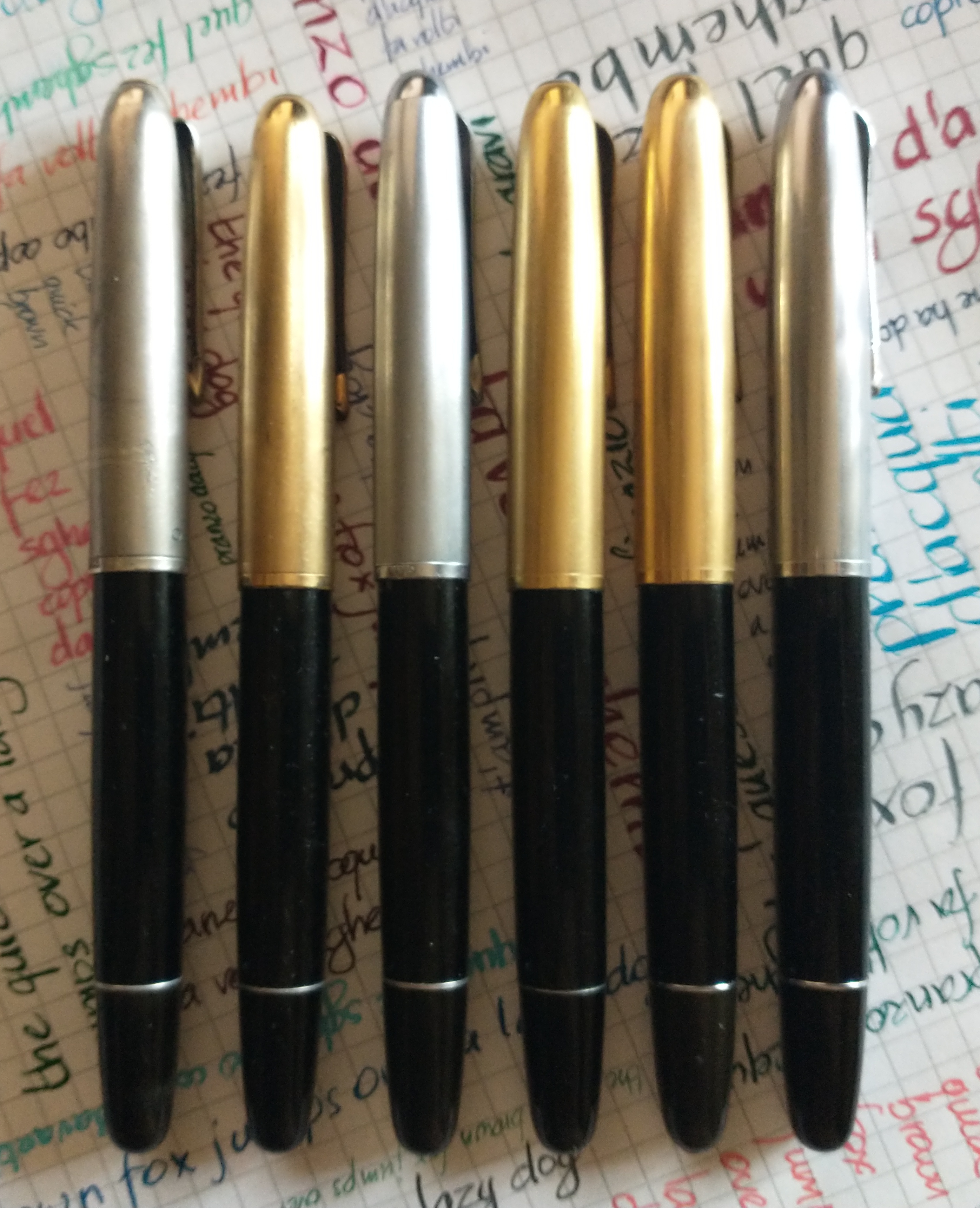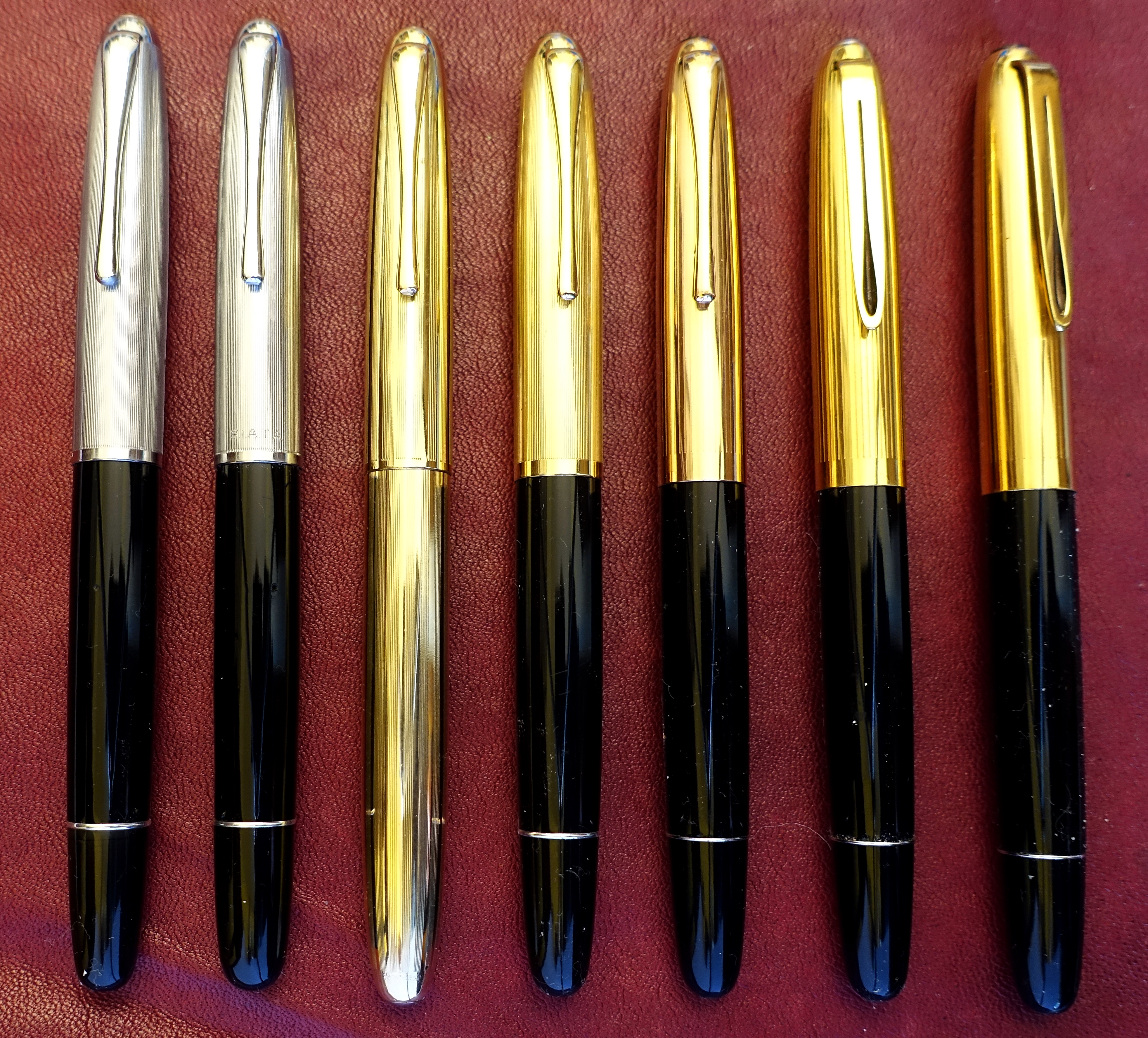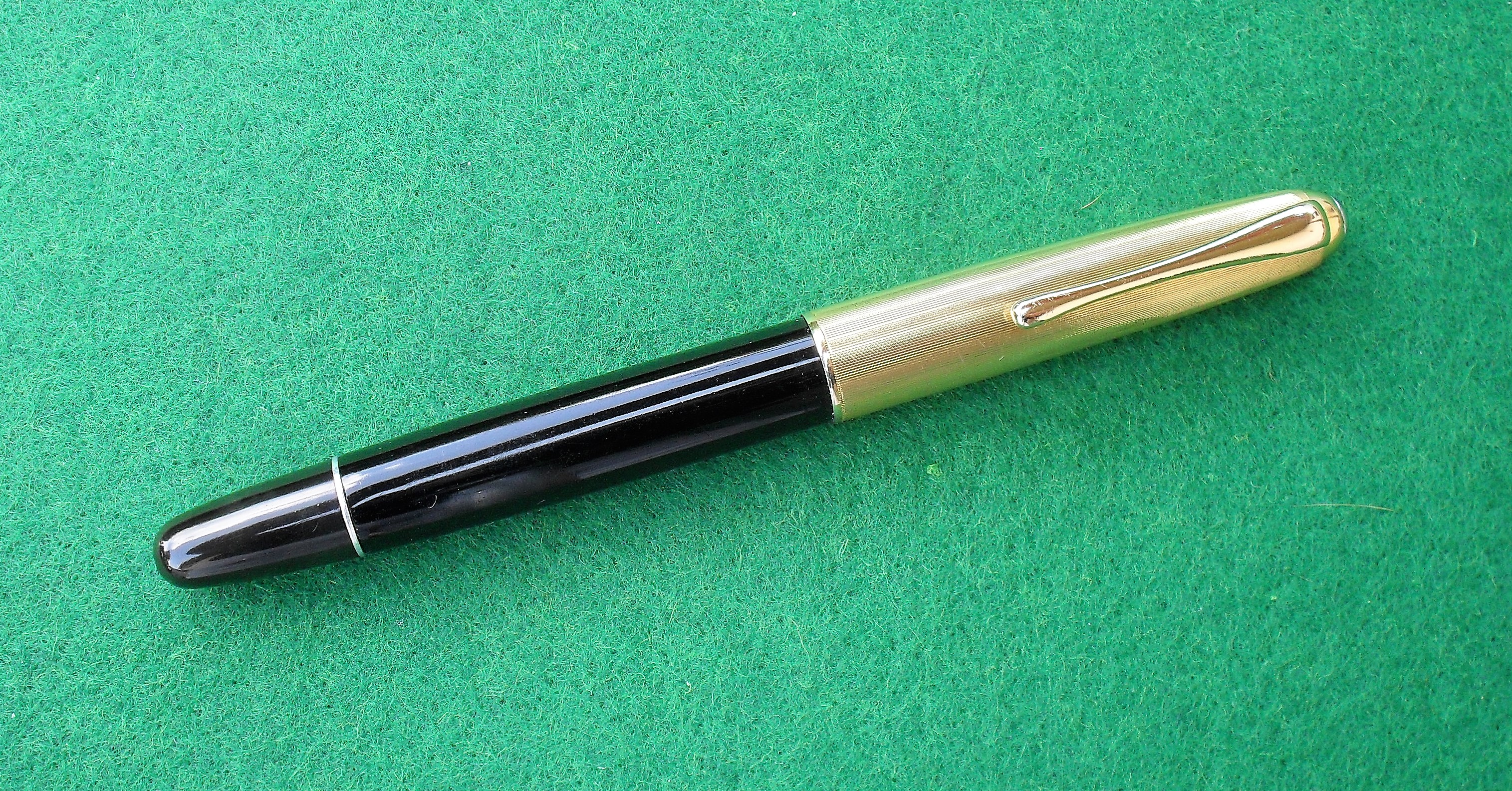 Ne ho trovata una anni fa in un mercatino dell'usato, senza cappuccio ma in discrete condizioni e funzionante, l'ho portata a casa per 8€. Le sue dimensioni la rendono confortevole e solida, peccato che abbia un pennino che io definirei M o B, troppo abbondante per la mia scrittura, ma con un ottimo flusso (ha il regolatore a camma e il tappino del fondello con le incisioni in cui, un tempo, erano segnate misura e tipologia di pennino). Per via del pennino e della mancanza del cappuccio l'ho usata davvero poche volte, per ora rimane in attesa di un pennino fine e un cappuccio che forse non arriveranno maiprobabilmente la venderò per ricambi prima o poi...