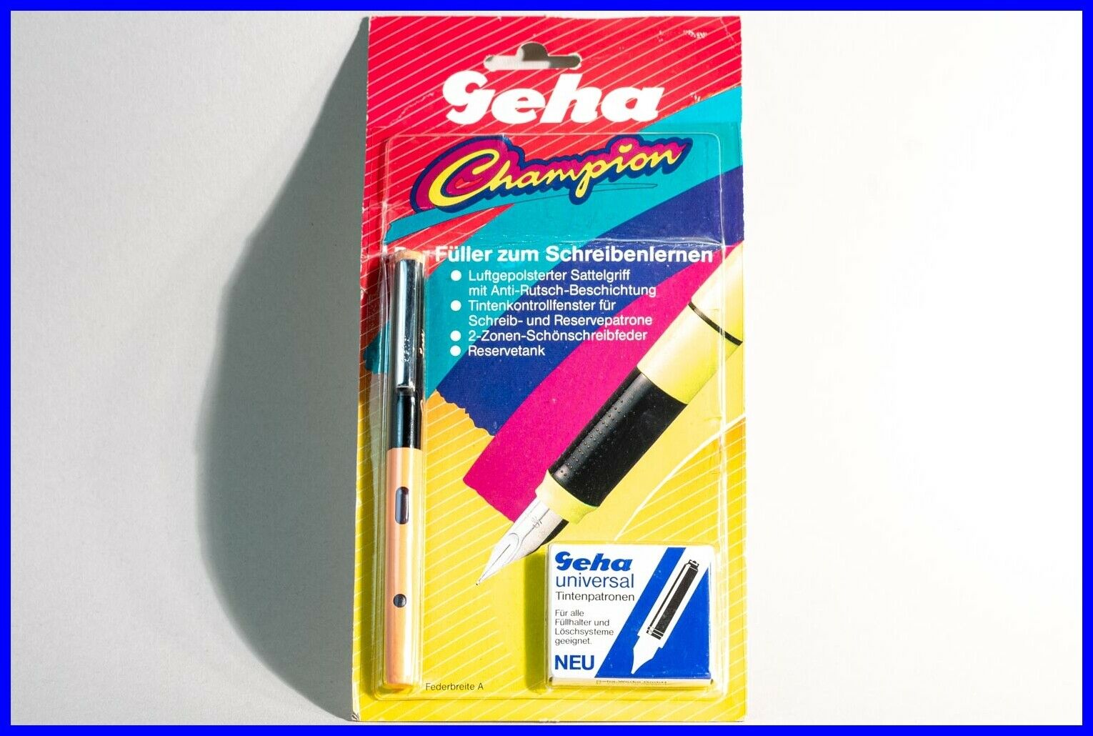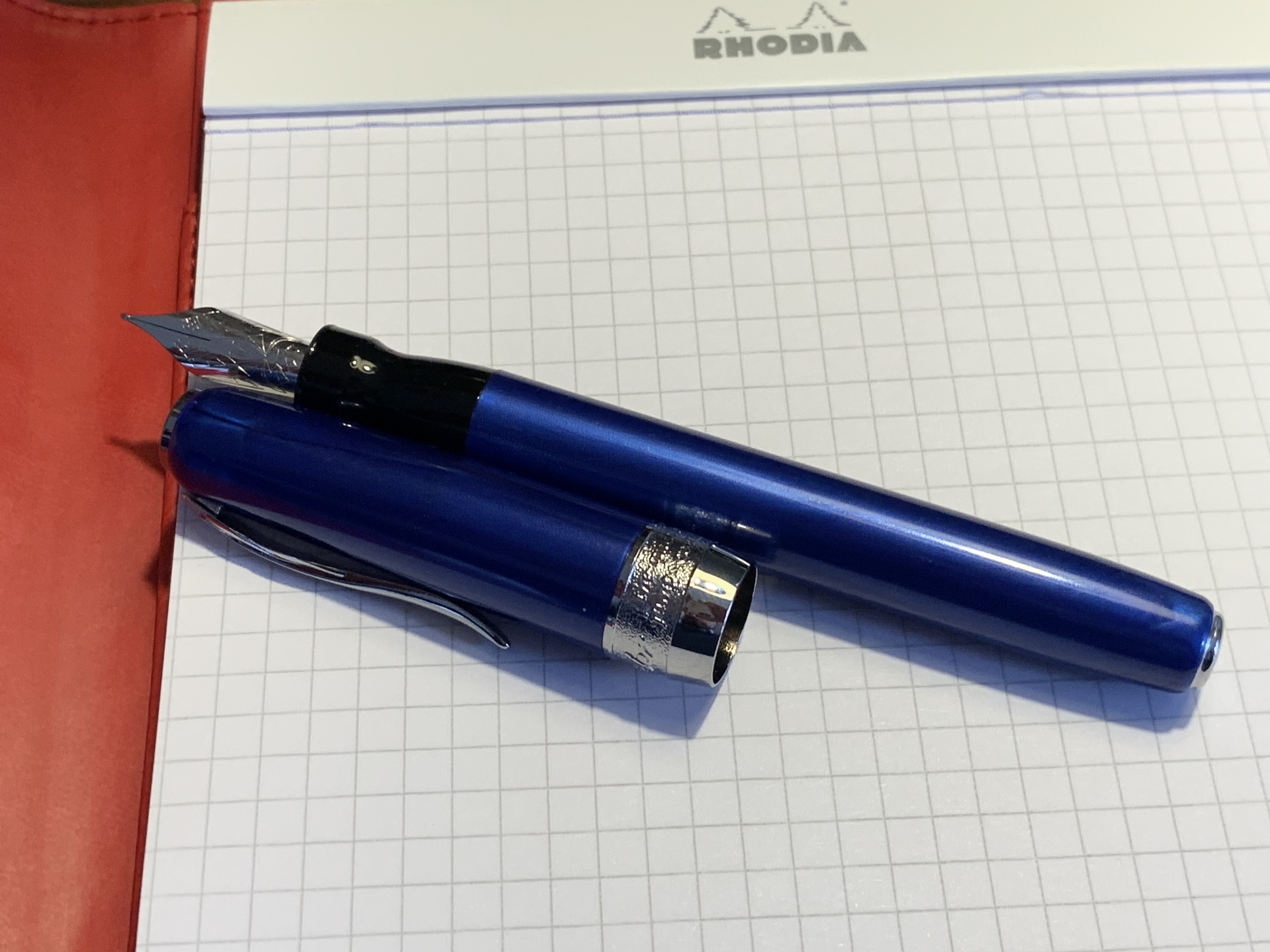 Oggi mi è arrivata questa scolasticissima Geha Champion con il fusto color arancio. Caricata con Blu Ultramarine de l'Artisan Pastellier va che è una bellezza, secondo me queste penne sono una spanna più su delle mie amatissime Pelikan.
