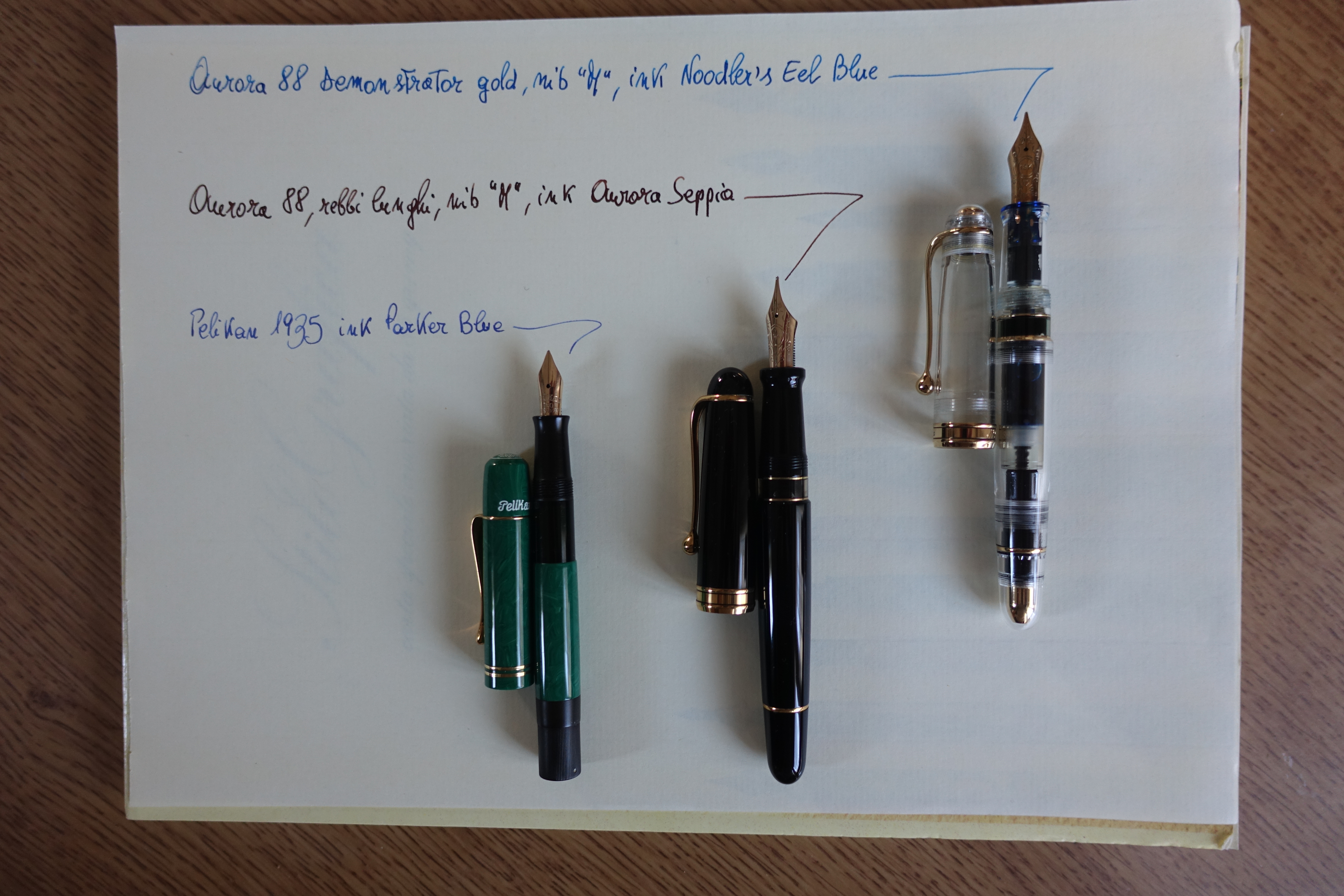 La Demonstrator completa la coppia con l'altra, nichelata con pennino F; la 88 big era da un pò che la miravo e la Pelikan.....erano vent'anni che era chiusa in un cassetto del negozio e mi è sembrato brutto lasciarla ancora lì.