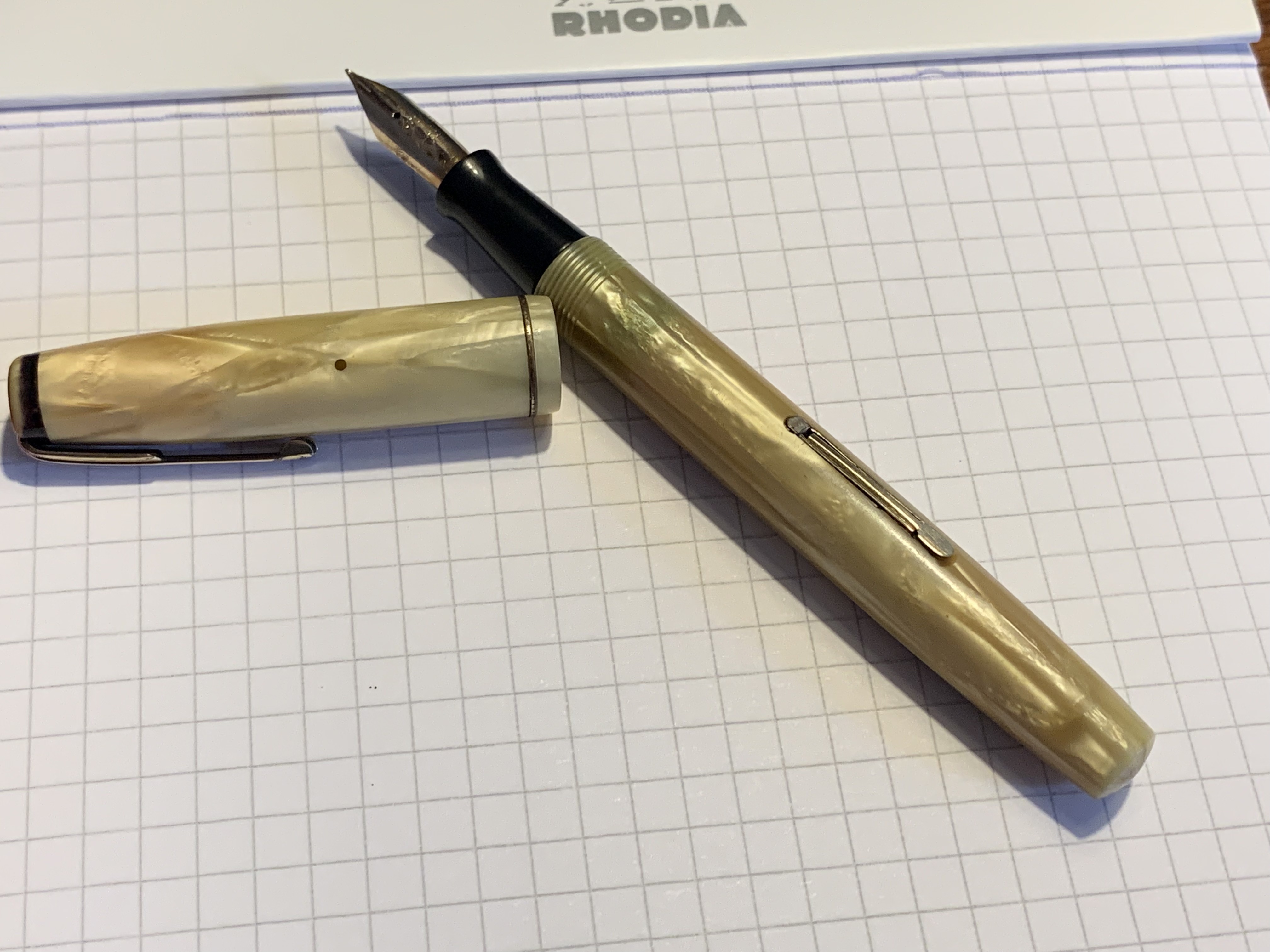 Poi, ieri, è arrivata la mia prima Waterman, Made in Usa con corpo in, credo, celluloide di un bellissimo giallo perlato… aprirò una discussione per chiedere info
