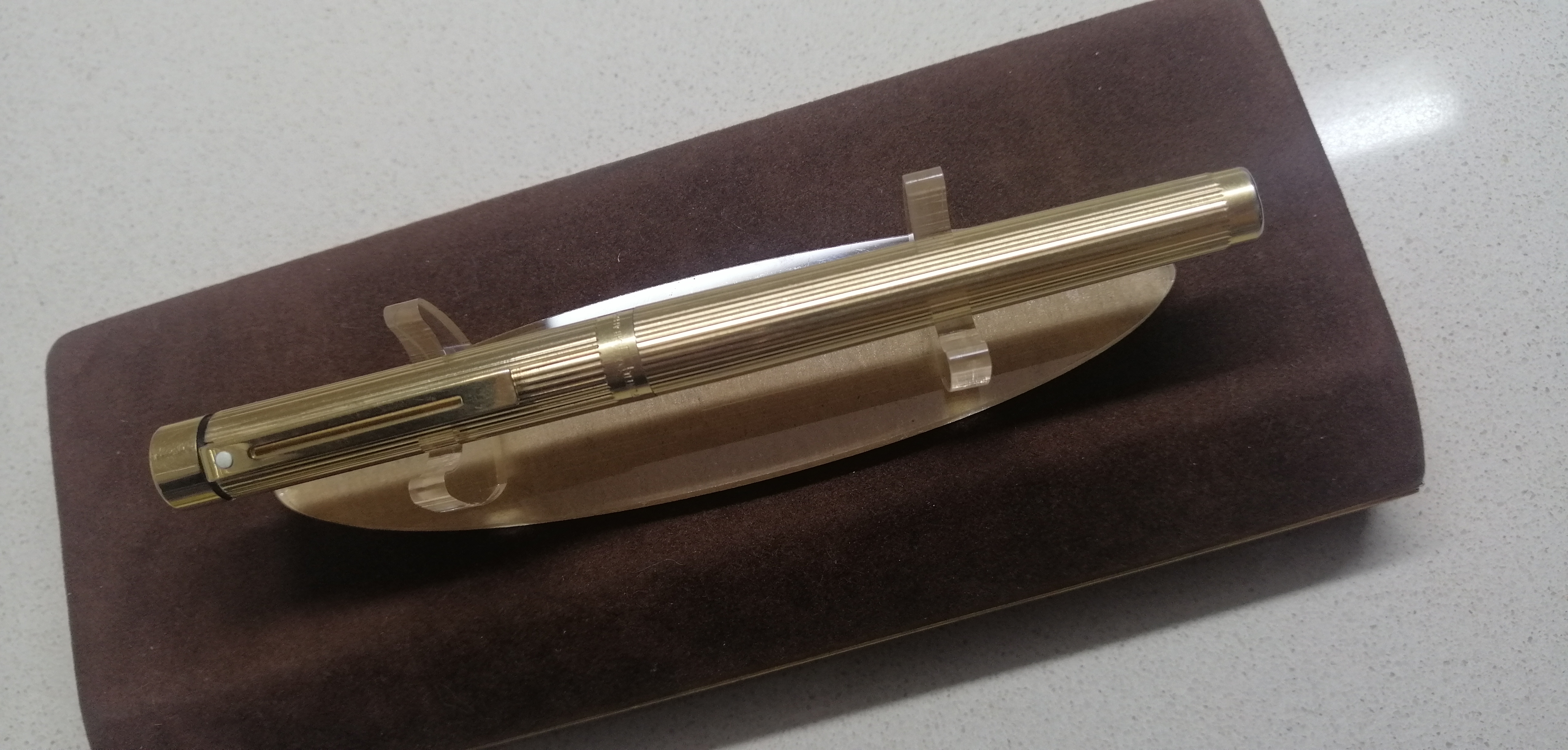 Bella quest’ultima penna, il poggiapenne è stupendo. Sul fondo c’è il vellutino ?