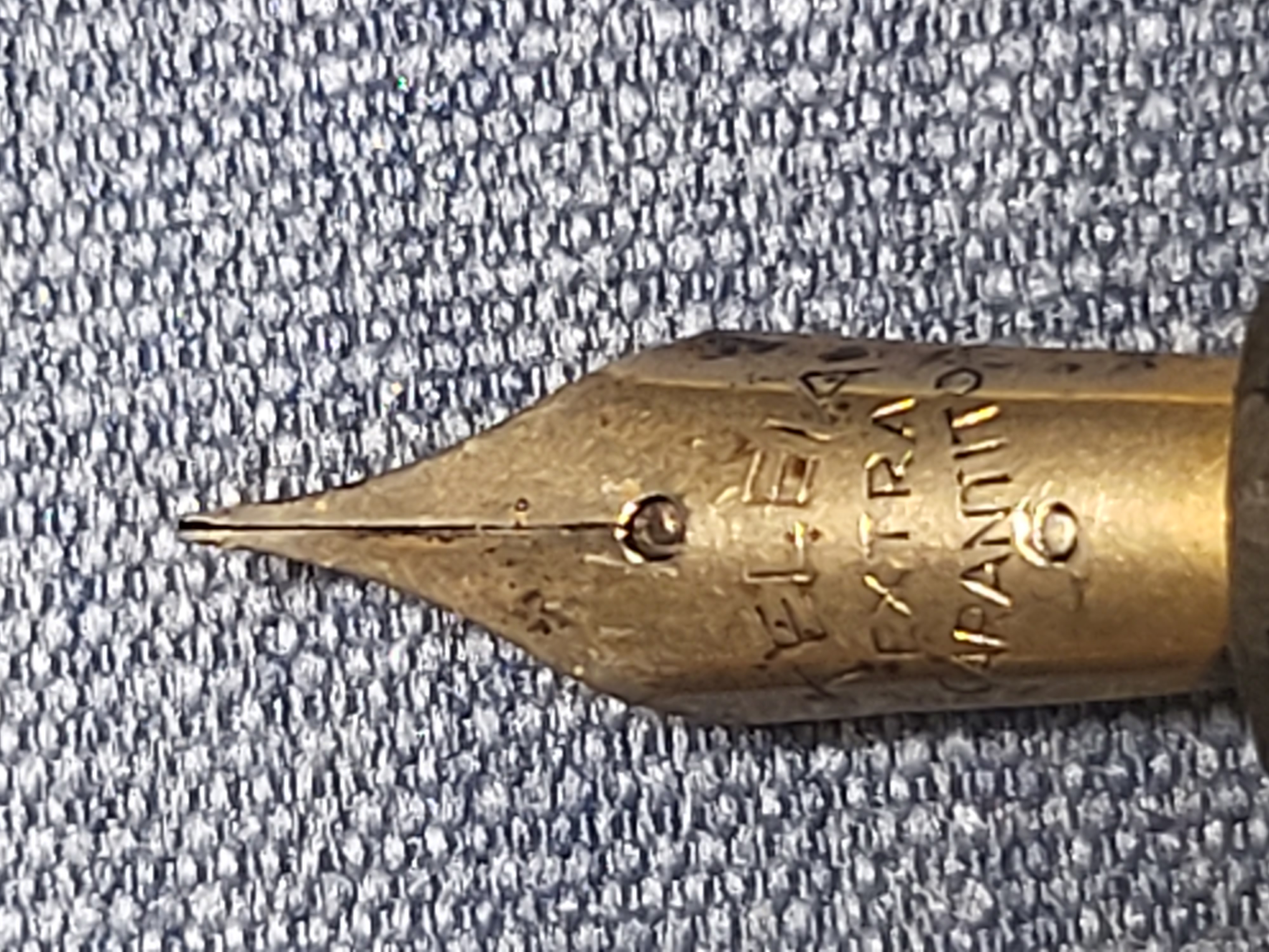 Cari amici del forum, non sono stato molto attivo ultimamente ma vorrei mostrare un pennino fatto anche da Teleia. Si trova su una vecchia penna marcata Montenero, la penna ha bisogno di un restauro.