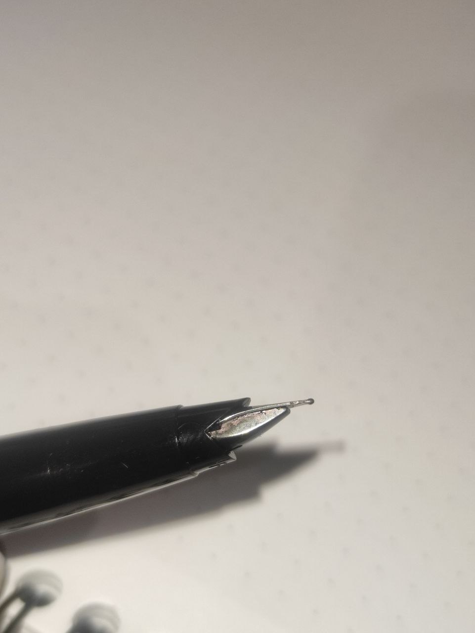 3. Puoi smontare il pennino (è facilissimo, la Parker 45 è progettata appositamente per essere smontabile) e agire con le dita allargando i rebbi a mano (NO PINZE!!! a manina Santa), ma ci vuole un po' di perizia se è la prima volta che lo fai, l'importante è andare piano e poco per volta e ricontrollare ad ogni passaggio, al massimo puoi esercitarti prima su qualche cinesata da pochi euro..