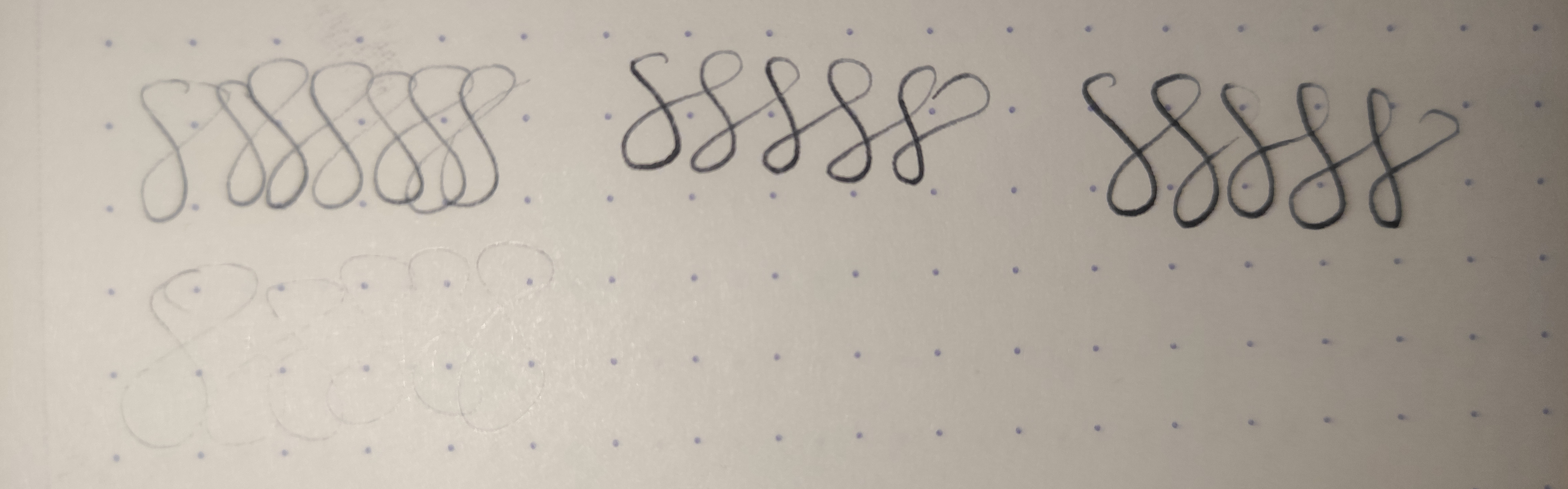 Ho fatto la prova anche su Rhodia, ma la penna funziona solo premendo molto. A volte neanche scrive.