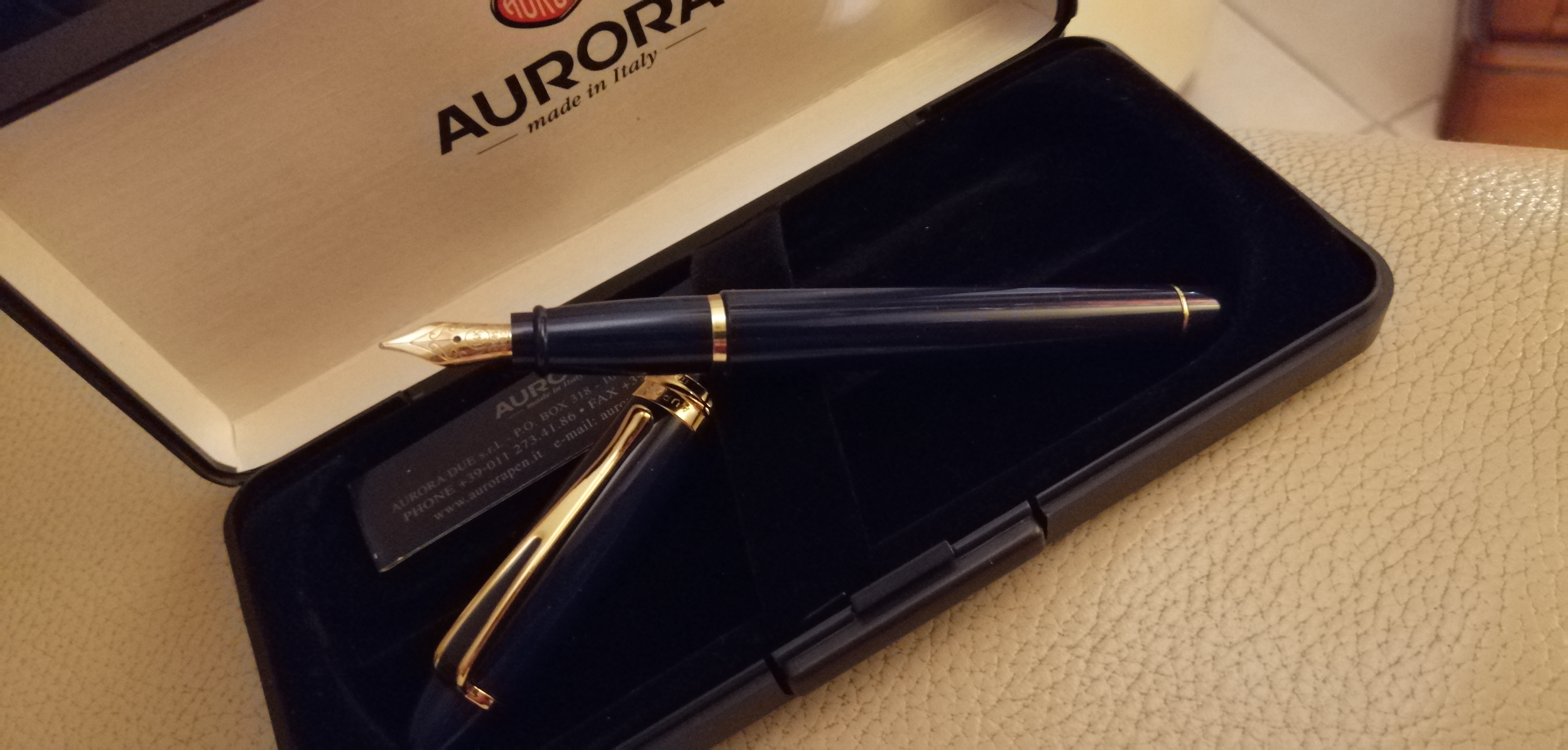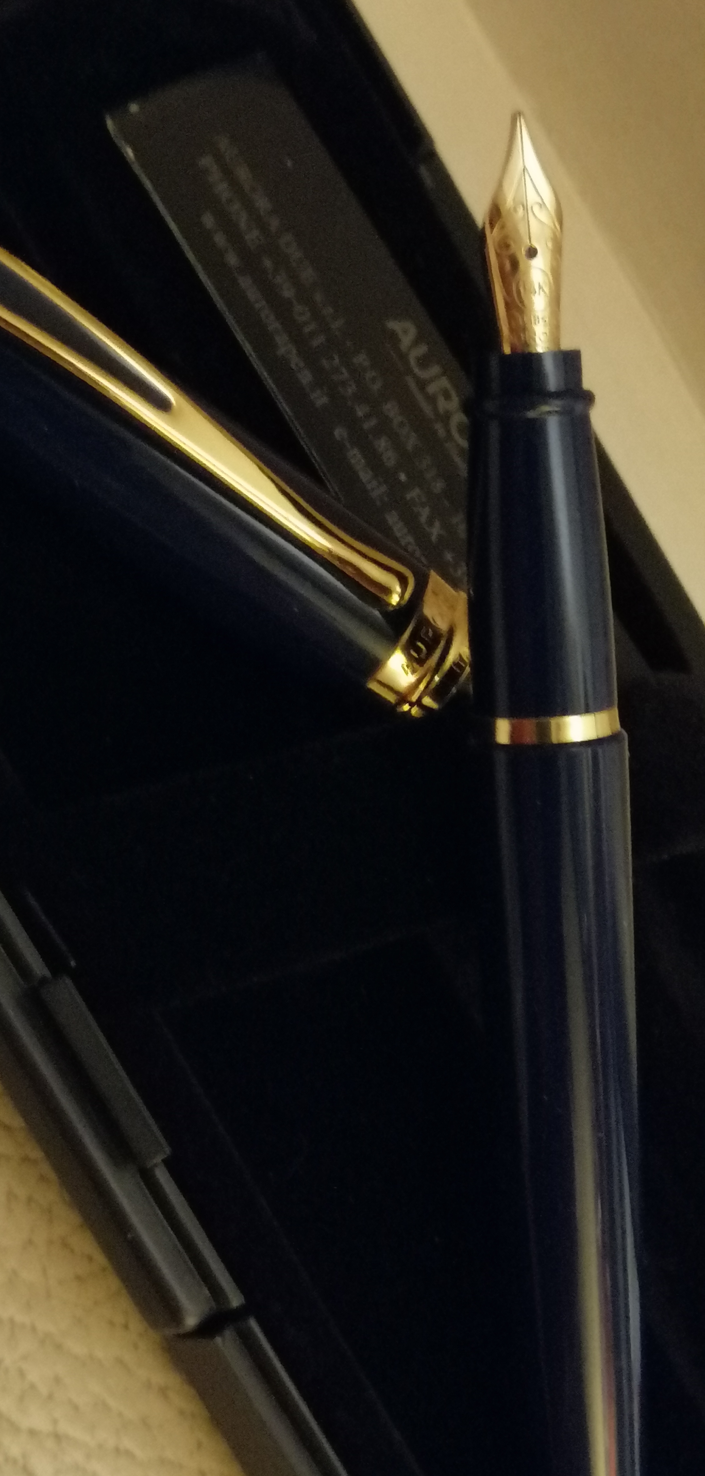 Dopo averla ripulita, inchiostrata con il Parker blue-black (mi sembrava l'inchiostro più appropriato) e provata sia su carta comune che su Rhodia, devo dire di essere molto soddisfatto dell'acquisto.