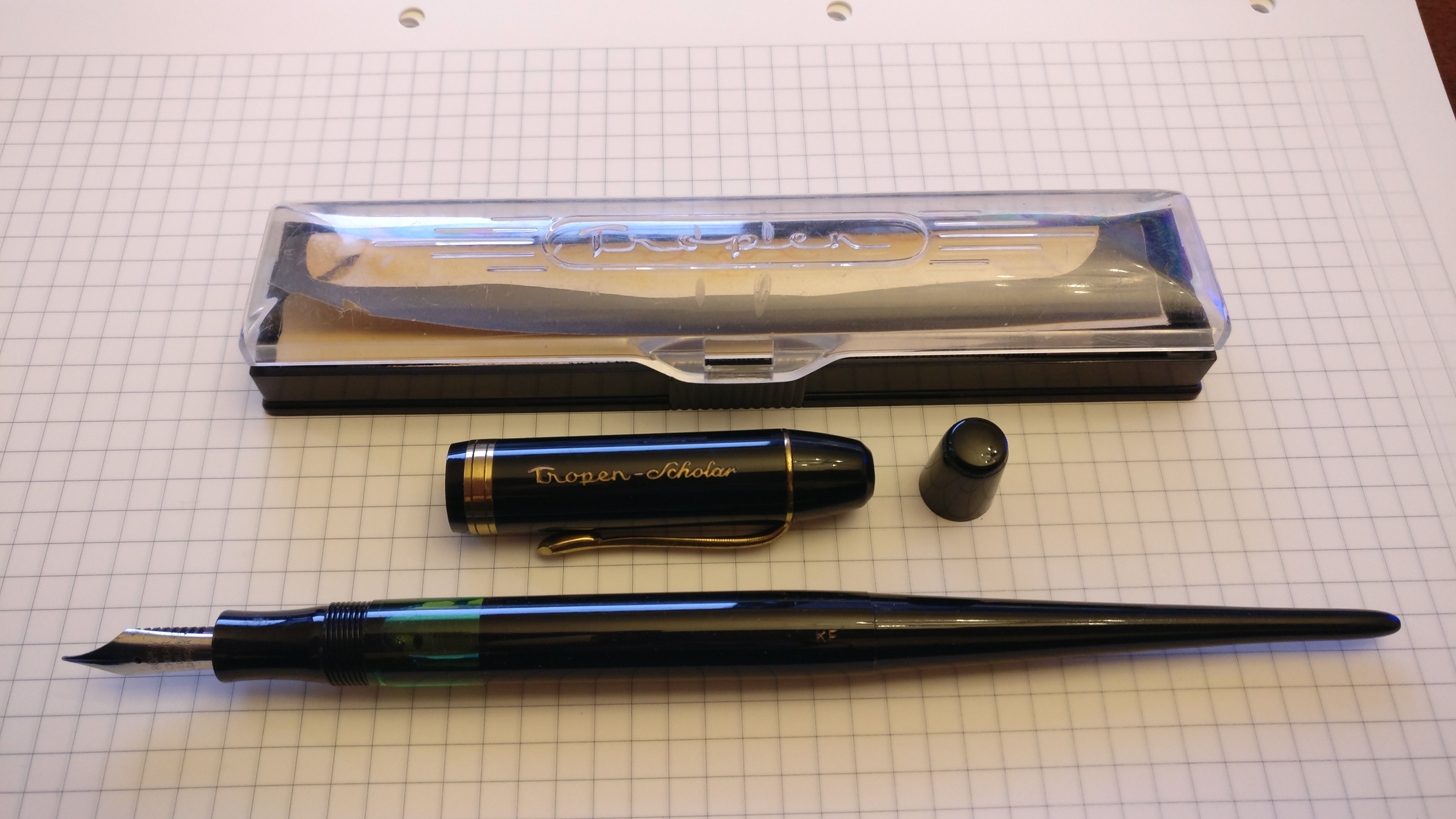 Riprendo dal libro sulle stilografiche di Lambrou che le penne erano fatte con la plastica "Trolitan". Da questo deriva il nome di Tro-pen