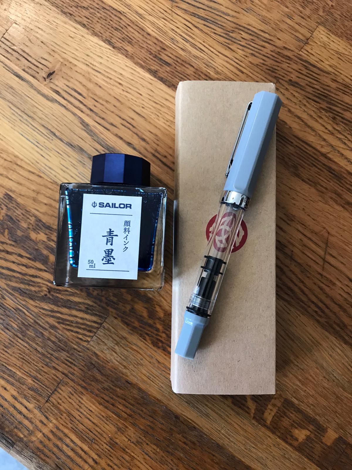 calamaio di inchiostro Sailor SeiBoku e Twsbi Eco nella colorazione Cement Grey, molto lontana da molte meraviglie che vi sono arrivate a voi ma per il momento mi accontento e mi godo questa nuova penna e l' inchiosto :D :D