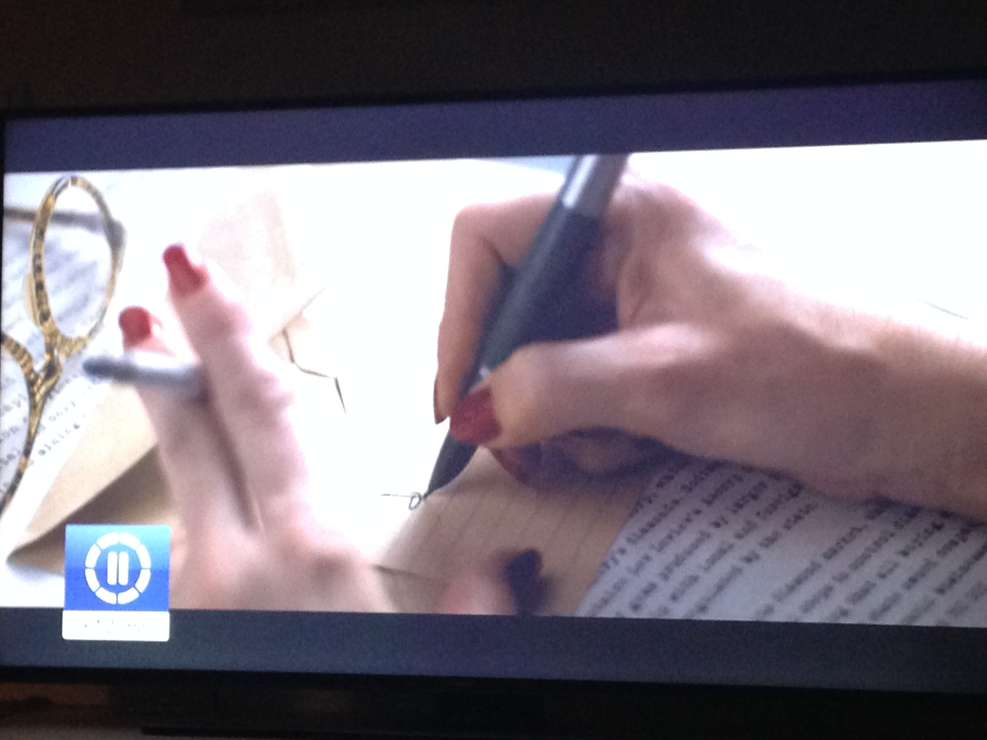 Per cui per la prima volta mi accorgo che Marty McFly scrive la lettera dal passato a Doc, con una stilografica, ma non sono riuscito a vedere qualche somiglianza con le penne dell'epoca, a cominciare dal colore, marrone; forse il cappuccio corto mi porta a pensare a una Sheaffer, ma vado a tentoni.