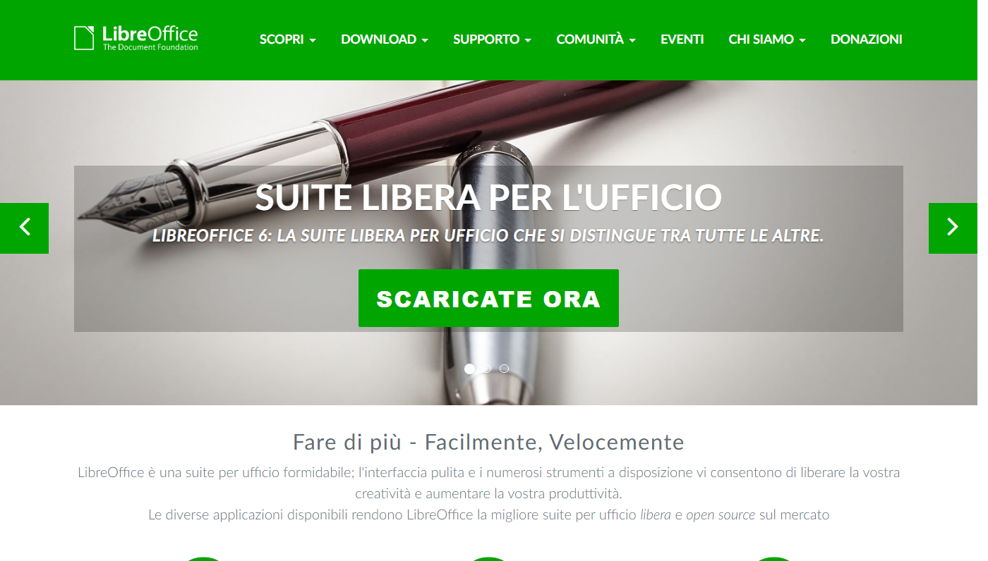 Qui sotto l'immagine attuale sulla Home Page di libreoffice.org