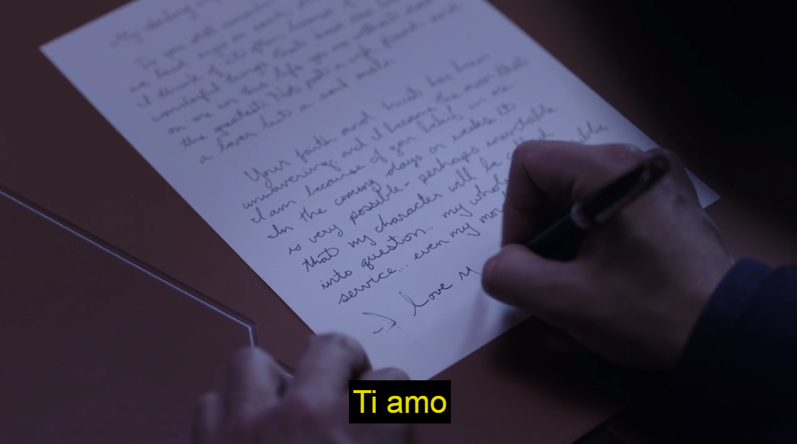No, è che nelle prime due immagini stava finendo di scrivere gli appunti della giornata, solo nell'ultima firmava un atto...