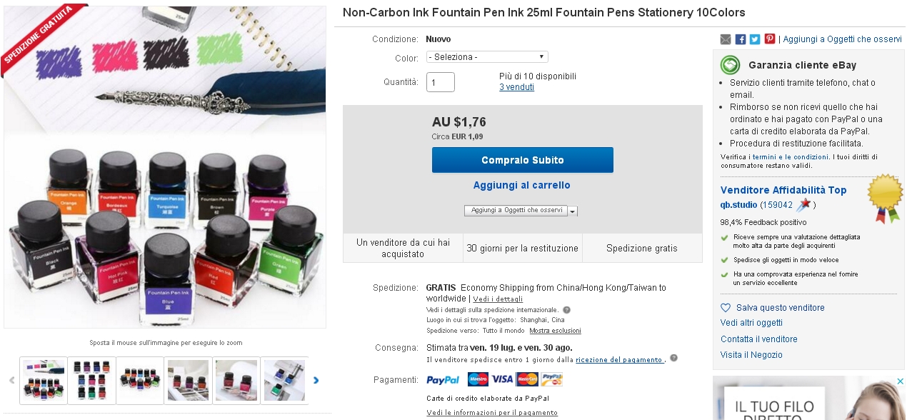 il prezzo sembra ottimo, poco più di 1 euro compresa spedizione per boccetta da 25 ml