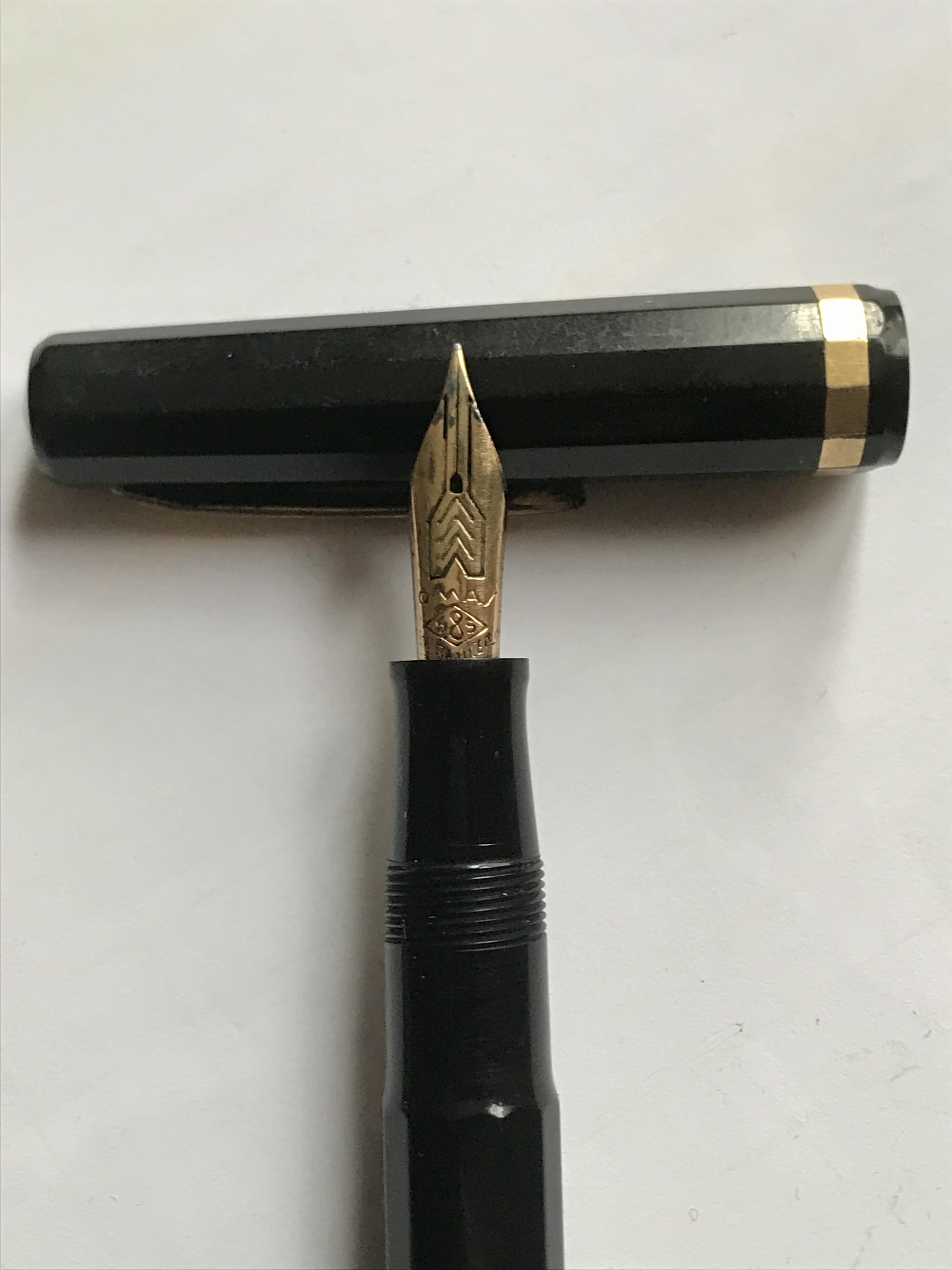 Un po' in ritardo ma ecco questa Olimpica, produzione Giacomazzi per le Olimpiadi di Berlino 1936, pennino in acciaio con cerchi olimpici.