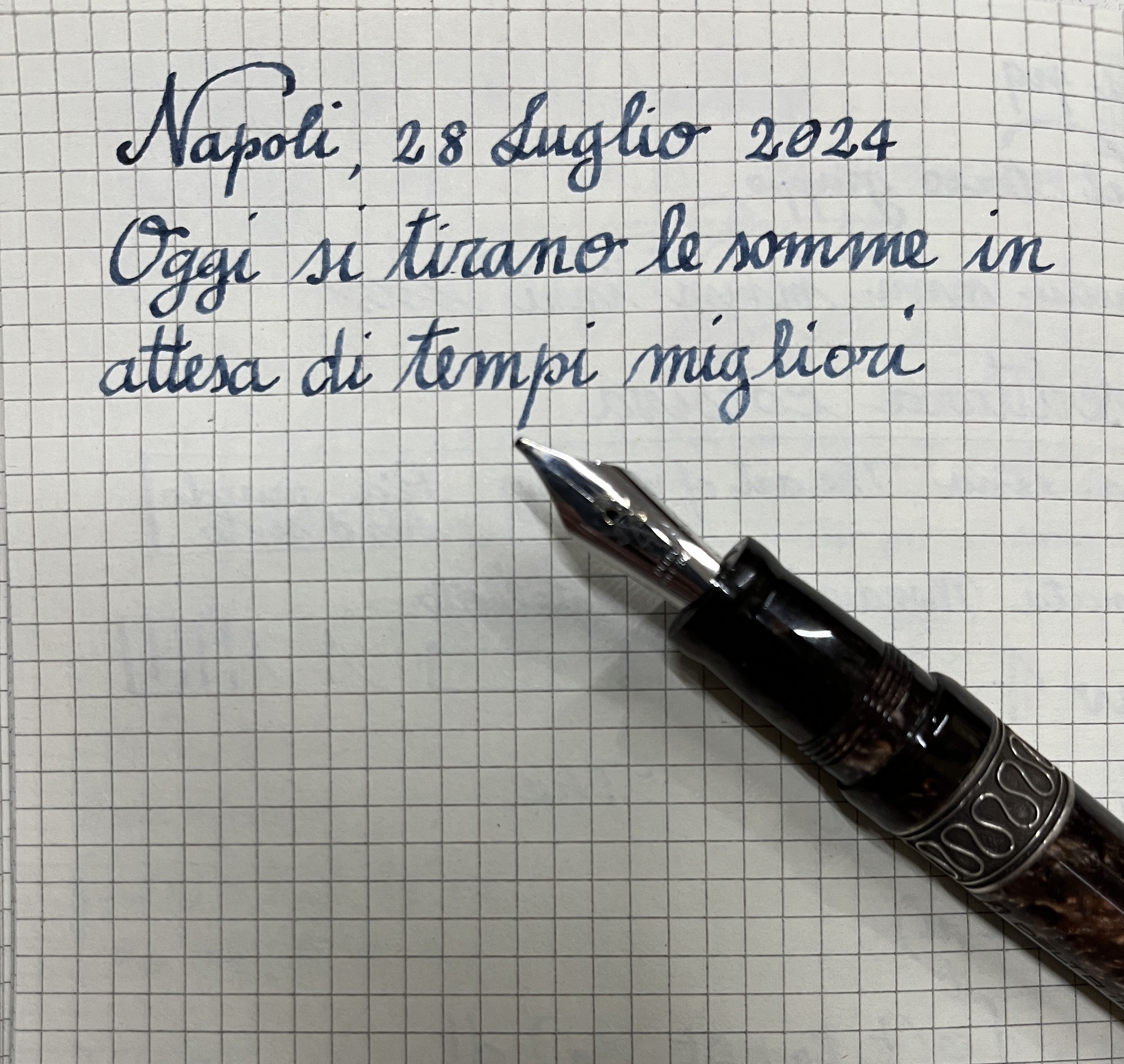 La grafica sembra migliore di quella che ti viene fuori dagli extrafini.alfredop ha scritto: ↑lunedì 29 luglio 2024, 21:04 Dopo l’xxf ho deciso che era il caso di provare a fare uno stub, avevo una Delta con pennino BB che nessuno voleva (è stata sul mercatino per qualche tempo) e quindi sono passato a lavorarci sopra. Ne è uscito uno stub con un tratto verticale di circa 1mm. Ecco una prova di scrittura (non sono abituato ad usare gli stub, quindi perdonate la grafia).
