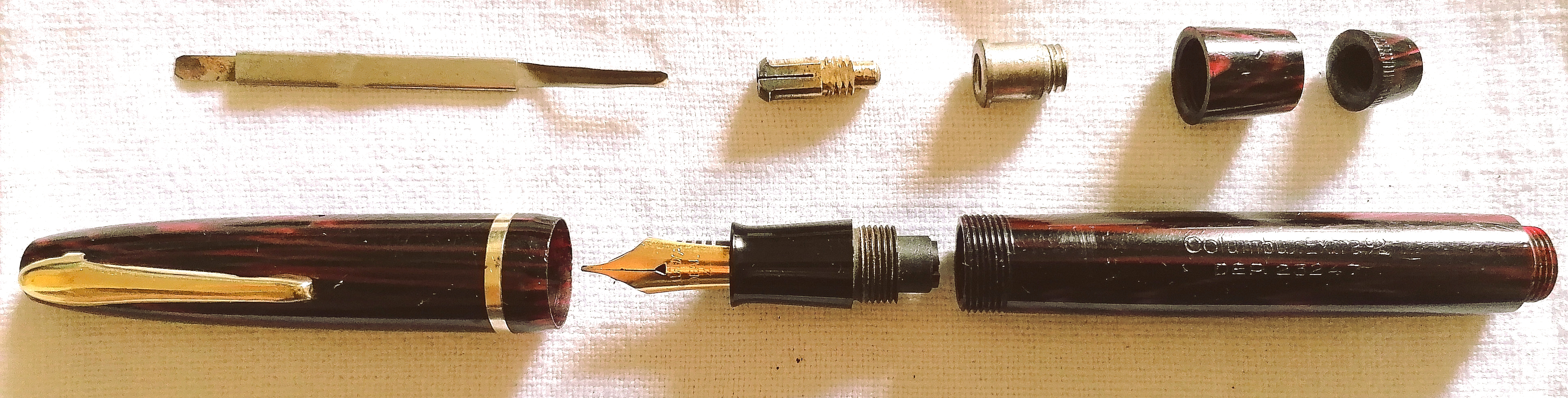 Approfitto per ringraziare Paolo "Linos" che, avendo pubblicato una Columbus 92 "esplosa" mi ha dato modo di venire a capo, senza problemi, del suo sistema di caricamento: pulsante di fondo (tipo Push-knob), a me in precedenza sconosciuto nei dettagli.