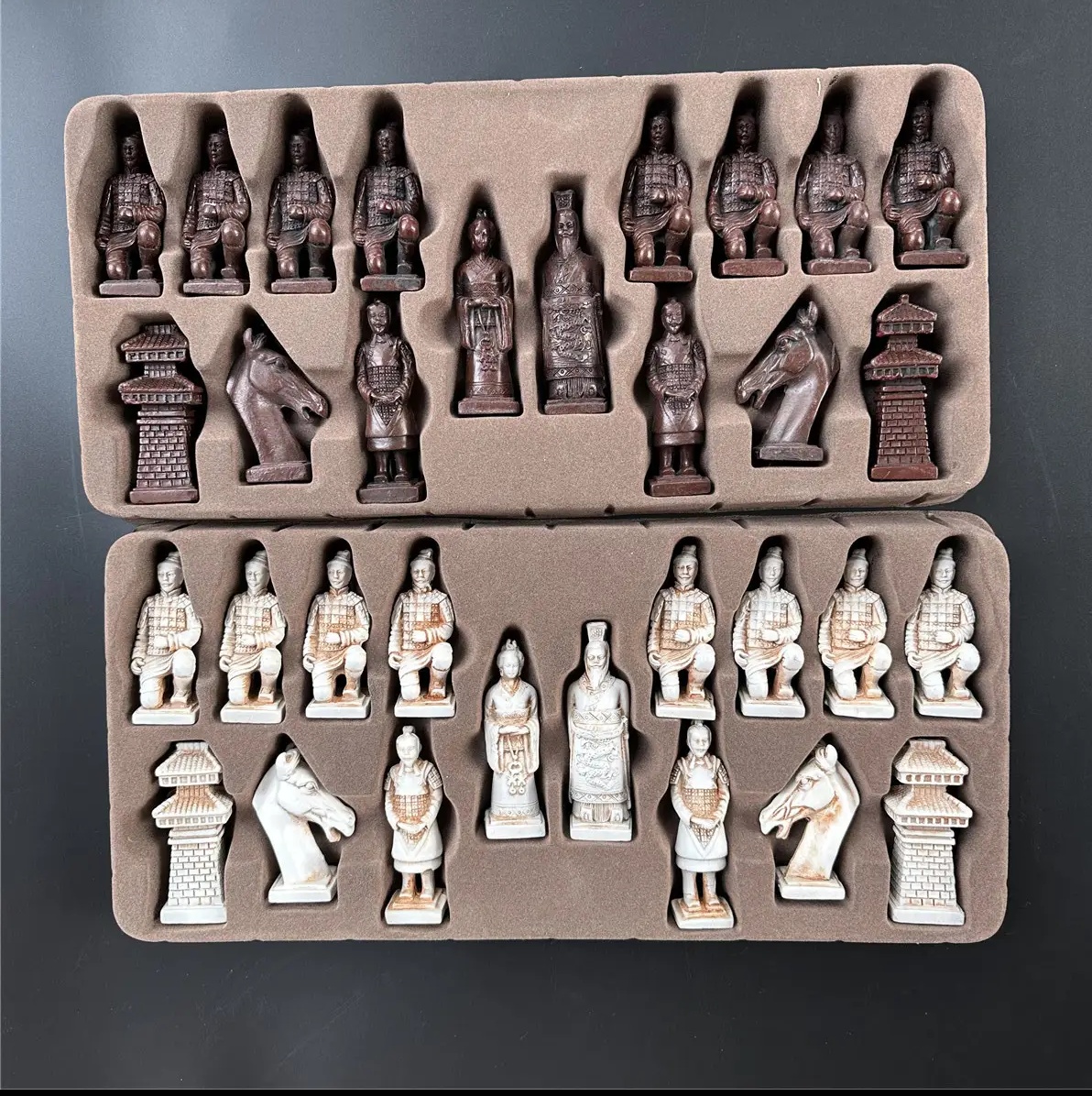 Il primo: Serie di scacchi, modello grande, raffiguranti l'esercito di terracotta.