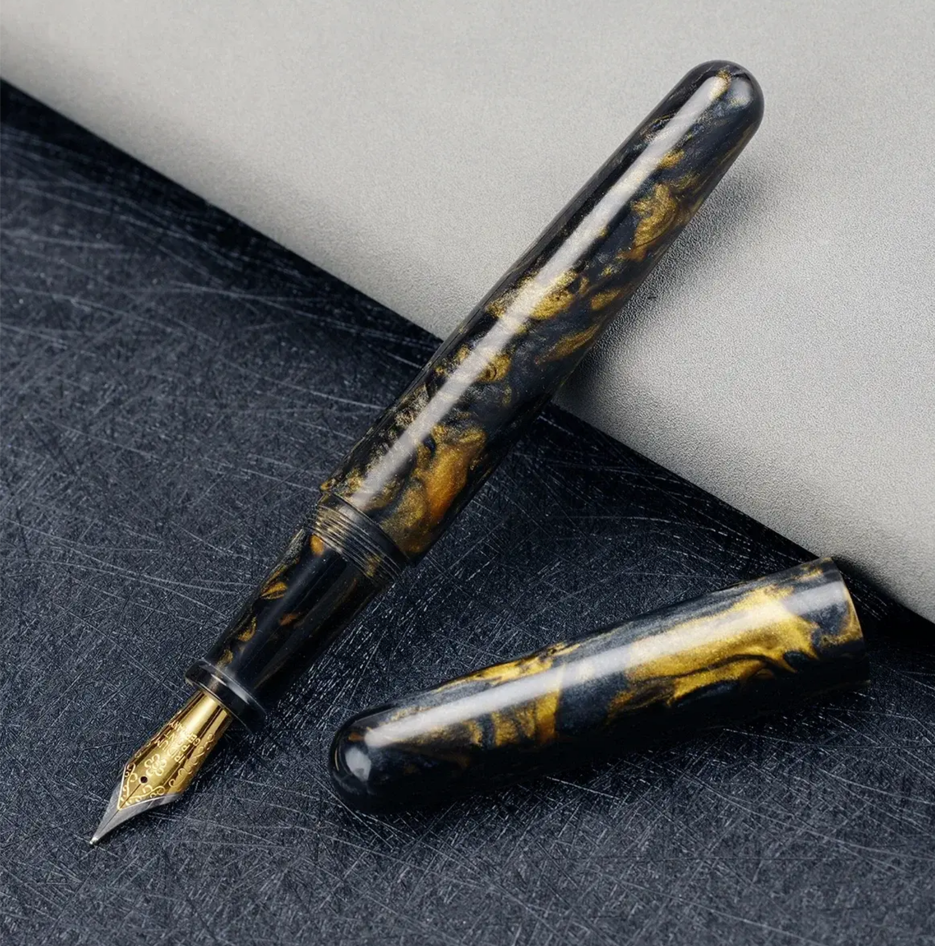 Il primo: Serie di scacchi, modello grande, raffiguranti l'esercito di terracotta. Misteriosa Riimoo 531, livrea foresta norvegese, dalle poche info dovrebbe avere le dimensioni di una Pelikan M600 Fuliwen 017, livrea nero e oro, avevo già preso la Blue caos, una resina Premium ad un prezzo mini.