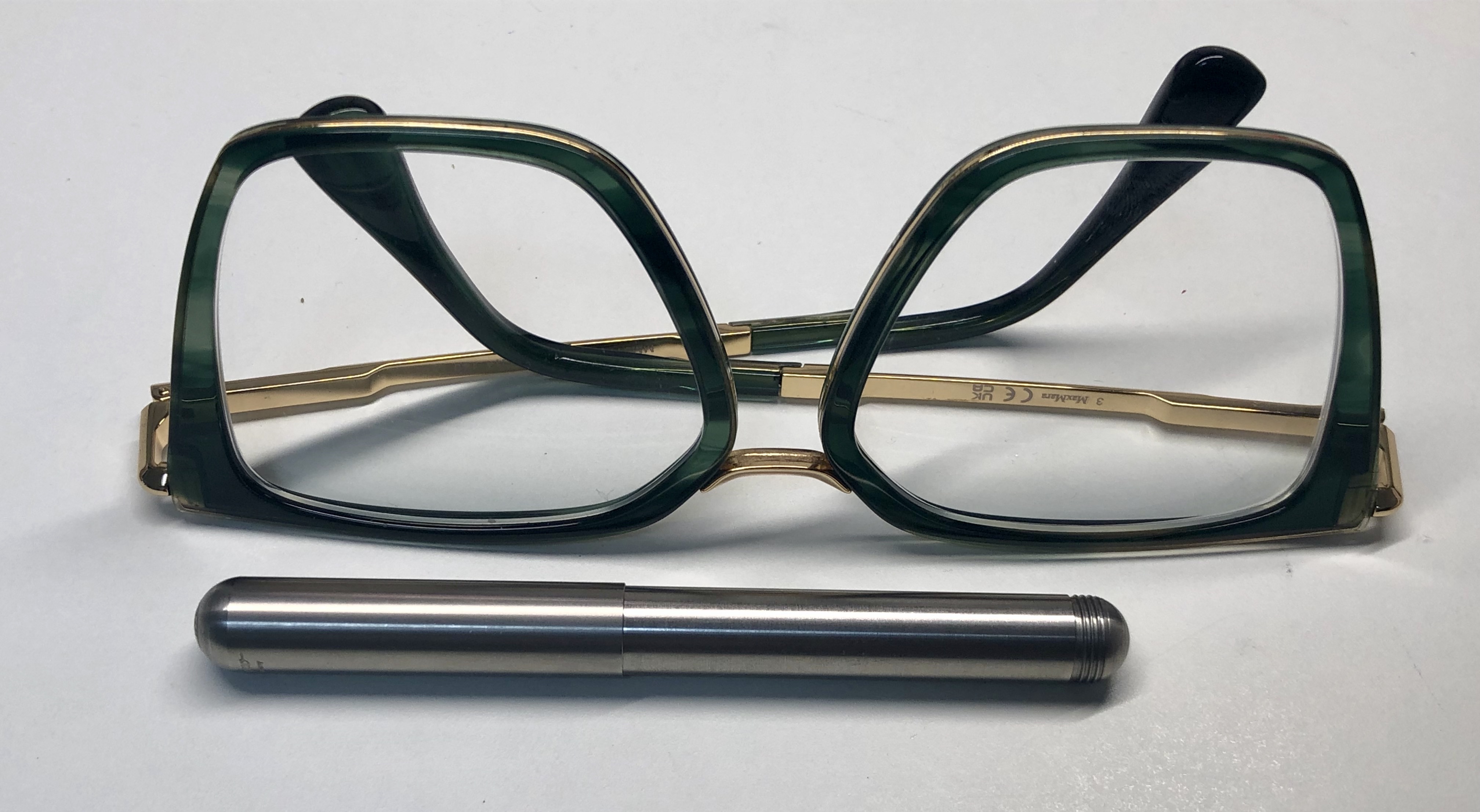 Finalmente il mio compleanno è arrivato, e insieme ad esso la bramata Kaweco Liliput e una boccetta di rosso Diamine! Non potrei essere più felice. Allego un confronto dimensionale con i miei occhiali, per dire