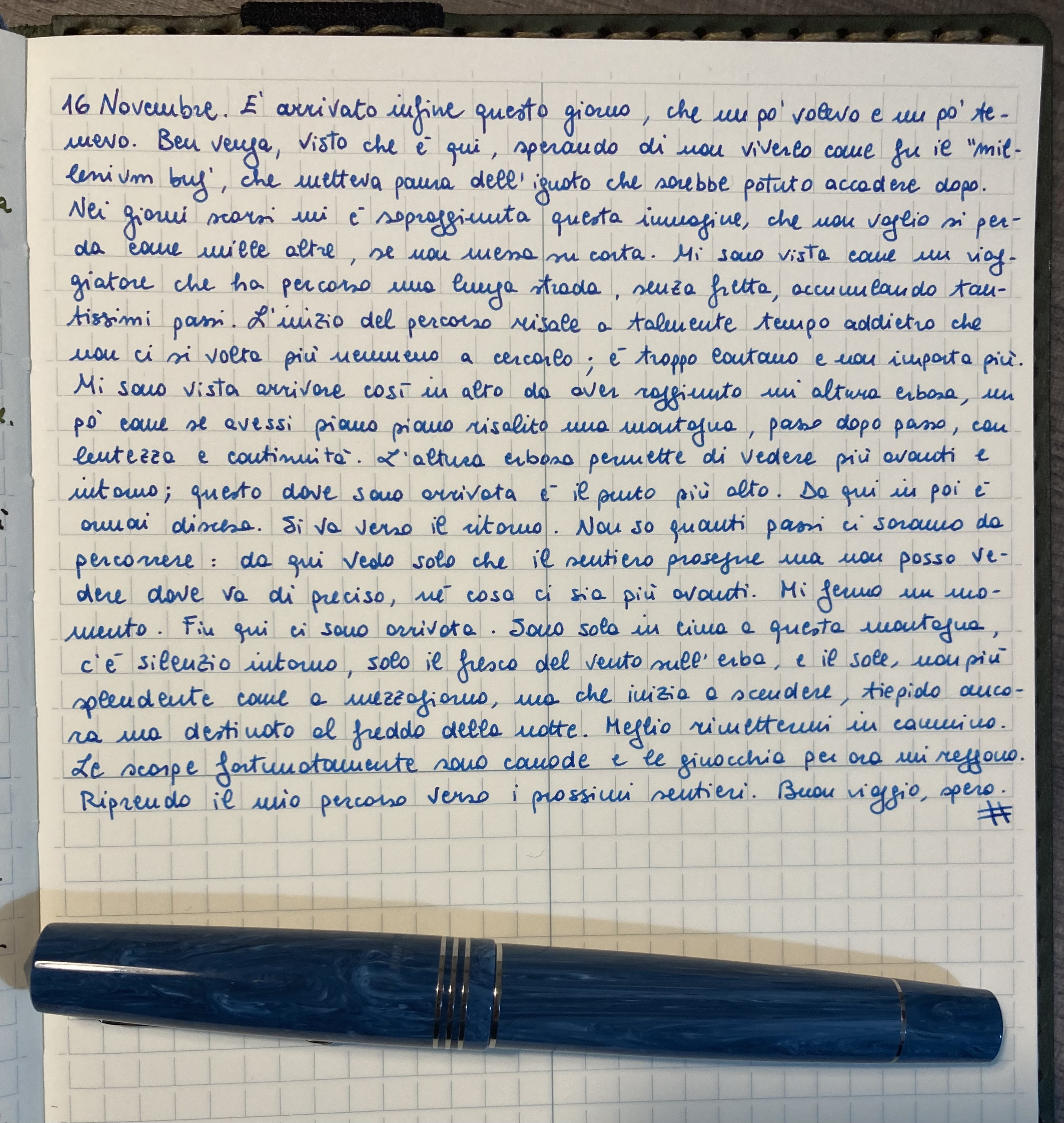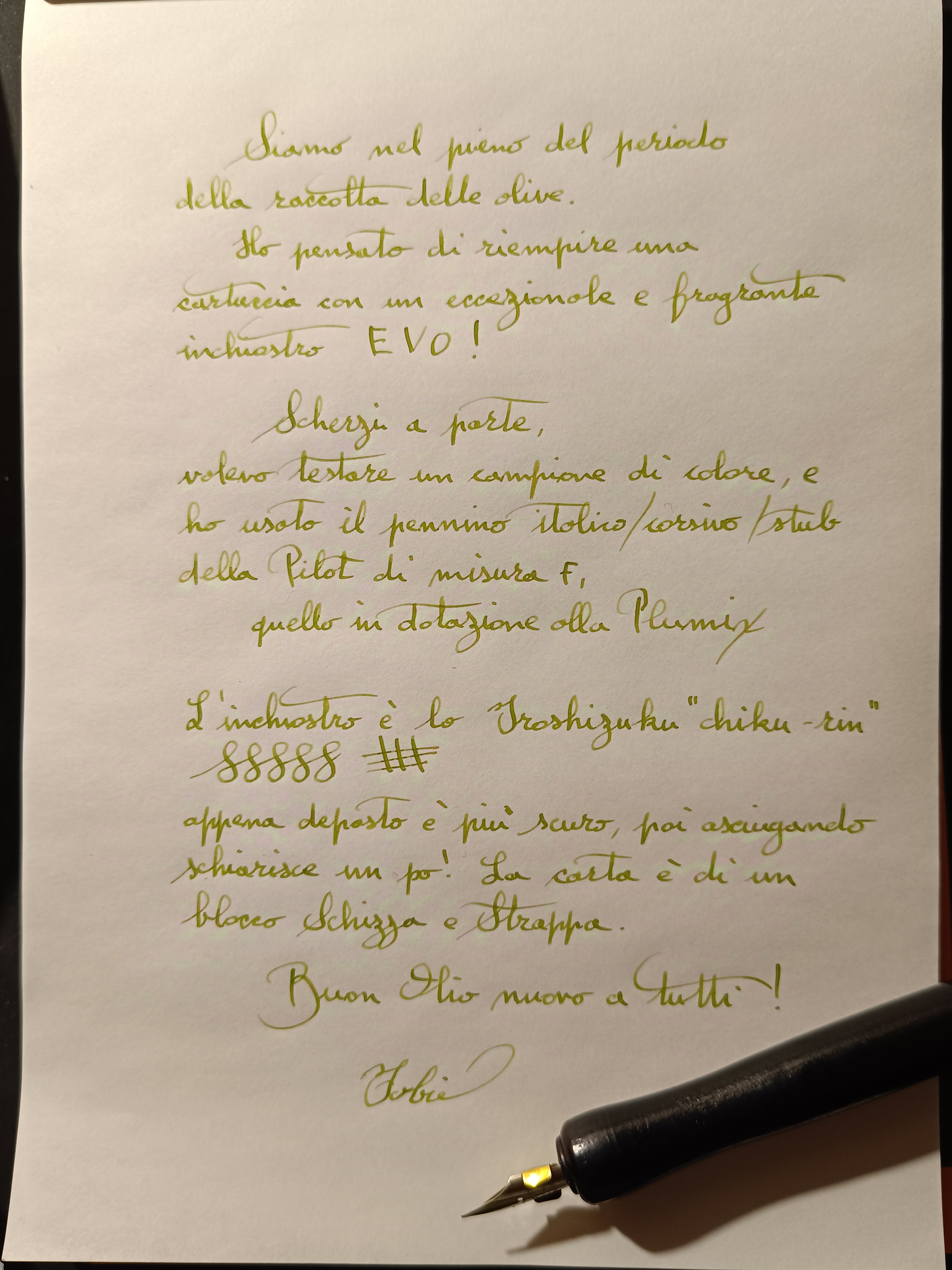 Ecco qui prova di scrittura con l'ultima arrivata (penna inchiostrata, NON per intinzione):