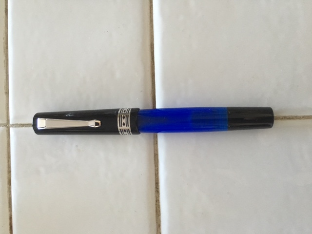 Confesso che ha addirittura superato le mie aspettative. La trovo molto bella e ben bilanciata, e la consistenza del corpo esprime qualità, mentre ed il colore blu abbinato al nero concilia eleganza e vivacità. Appena arrivata ho provato per intinzione subito il pennino. Ad essere sincera ho notato subito una ottima scorrevolezza, però il tratto presentava dei salti e delle false partenze. Allora ho deciso di caricarla. Ho usato il Waterman Serenity Blue, che mi piace molto e che è sempre una sicurezza per provare una penna, almeno nella mia limitata esperienza. Si è caricata completamente con 4 colpi sul perno di carica. A questo punto ho cominciato a scrivere e mi sono accorta ancora delle piccole irregolarità di comportamento viste già prima. Allora ho controllato con la lente l'allineamento del rebbi del pennino e tutto era ok. Ho provato su diverse carte, più o meno assorbenti e il problema si presentava di più con le carte pregiate e più lucide. Ripeto, data la mia esperienza limitata, però per me si trattava di un lieve baby bottom. La stessa cosa mi era capitata con una kawevo sport in passato. Insomma, ho sfoderato due quadratini di micromesh, quello da 8000 e poi quello da 12000 punti. Ho tracciato in progressione qualche "8 rovesciato" e ho controllato poi volta per volta la scrittura. In pochi passaggi la penna ha iniziato a scrivere alla perfezione.