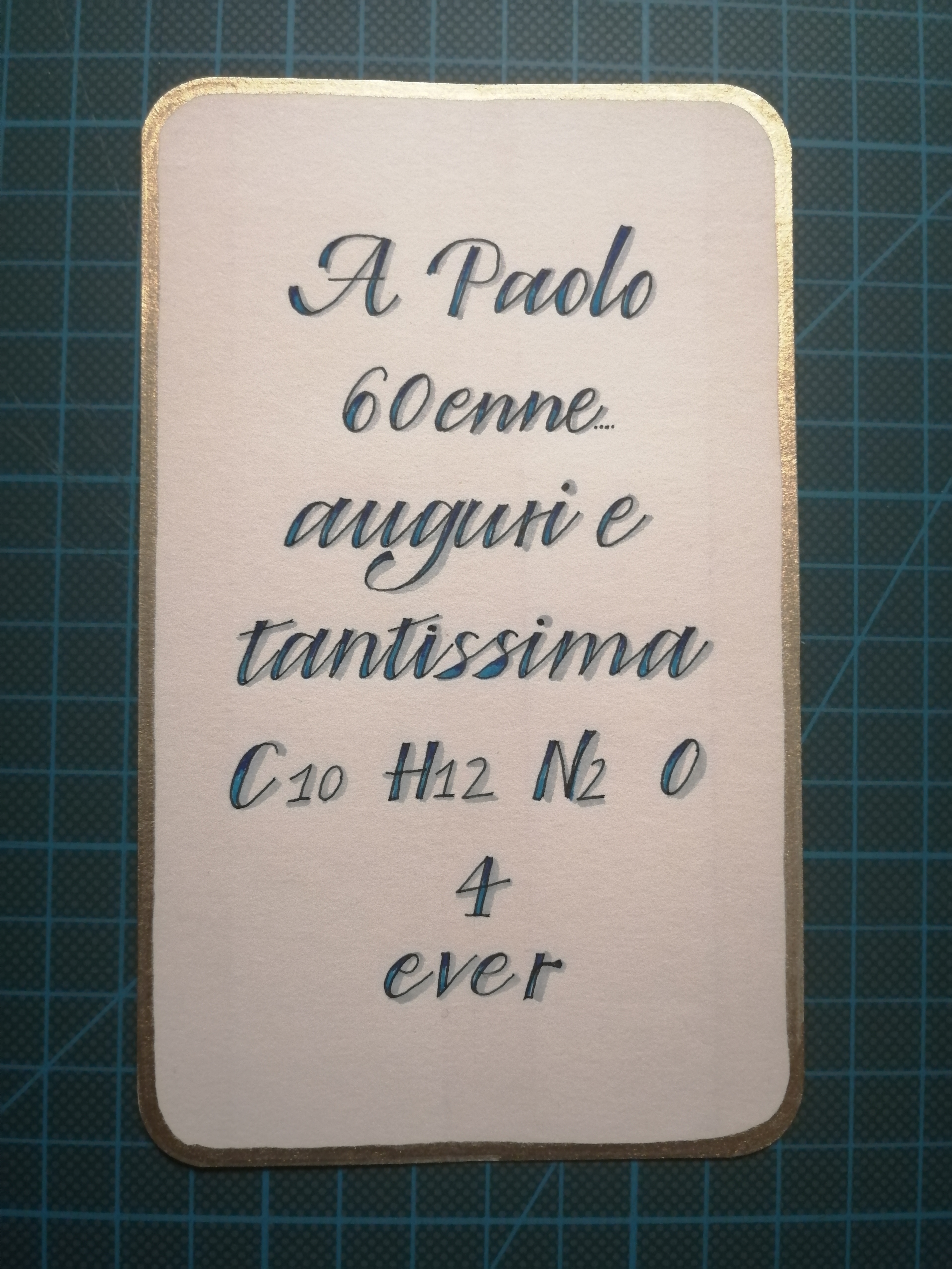 A causa di richieste di biglietti di auguri, ultimamente una delle poche cose che mi spronano a scrivere qualcosa, ho fatto questa etichetta. La base é un italico monolinea fatto con penna spessore 0,2. Il risultato mi piace molto.