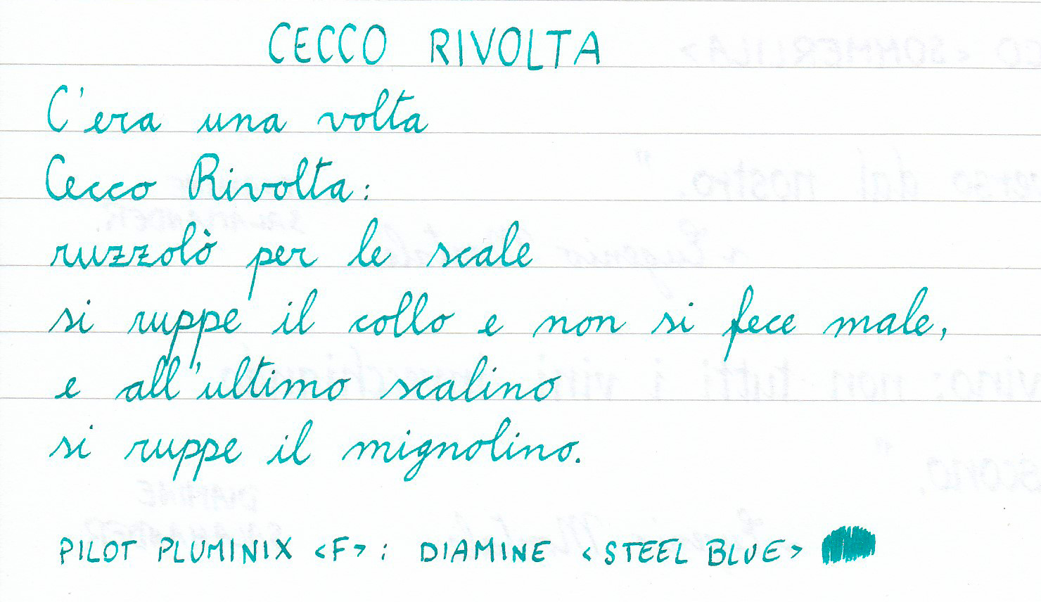 L'inchiostro è Monteverde Rose Noir, ho ricevuto un campioncino da una corrispondente molto generosa. Il colore è interessante solo quando si usa una penna dal flusso estremamente, esageratamente generoso. La Faber-Castell B ha un flusso di tutto rispetto, ma l'inchiostro non scorre bene e si secca man mano che si scrive! Incredibile!