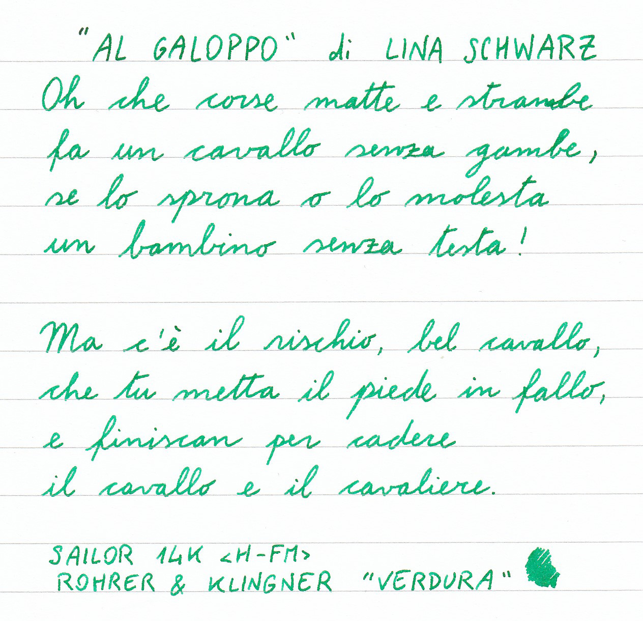 Pelikan 120 ST con Rohrer & Klingner Verdigris, su carta Clairefontaine 90g/m.