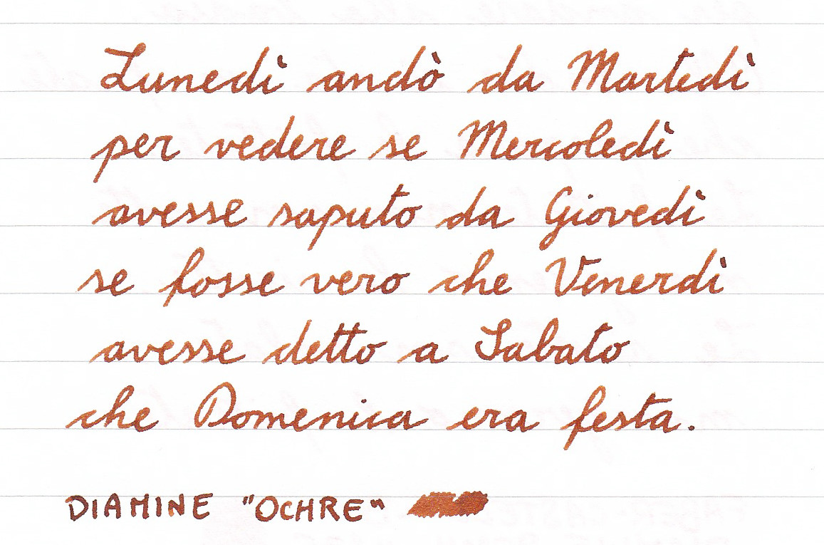 Molto bello Diamine Ochre, leggermente più scuro del fratello Sepia.
