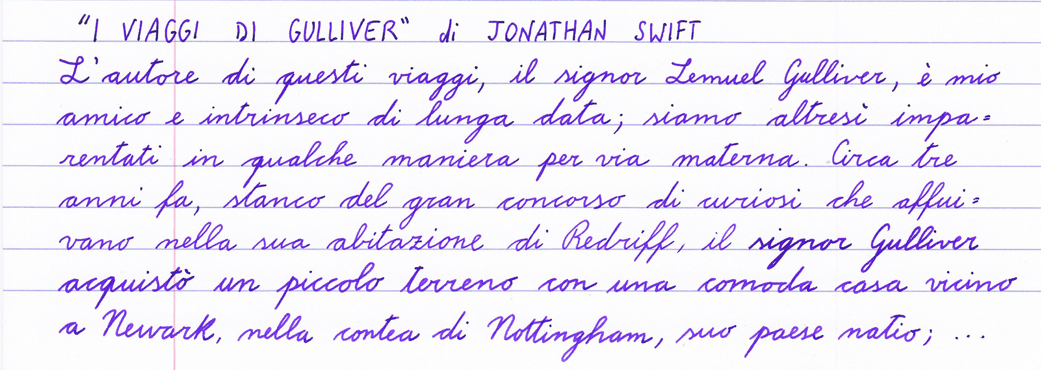 Incipit di "I Viaggi di Gulliver."