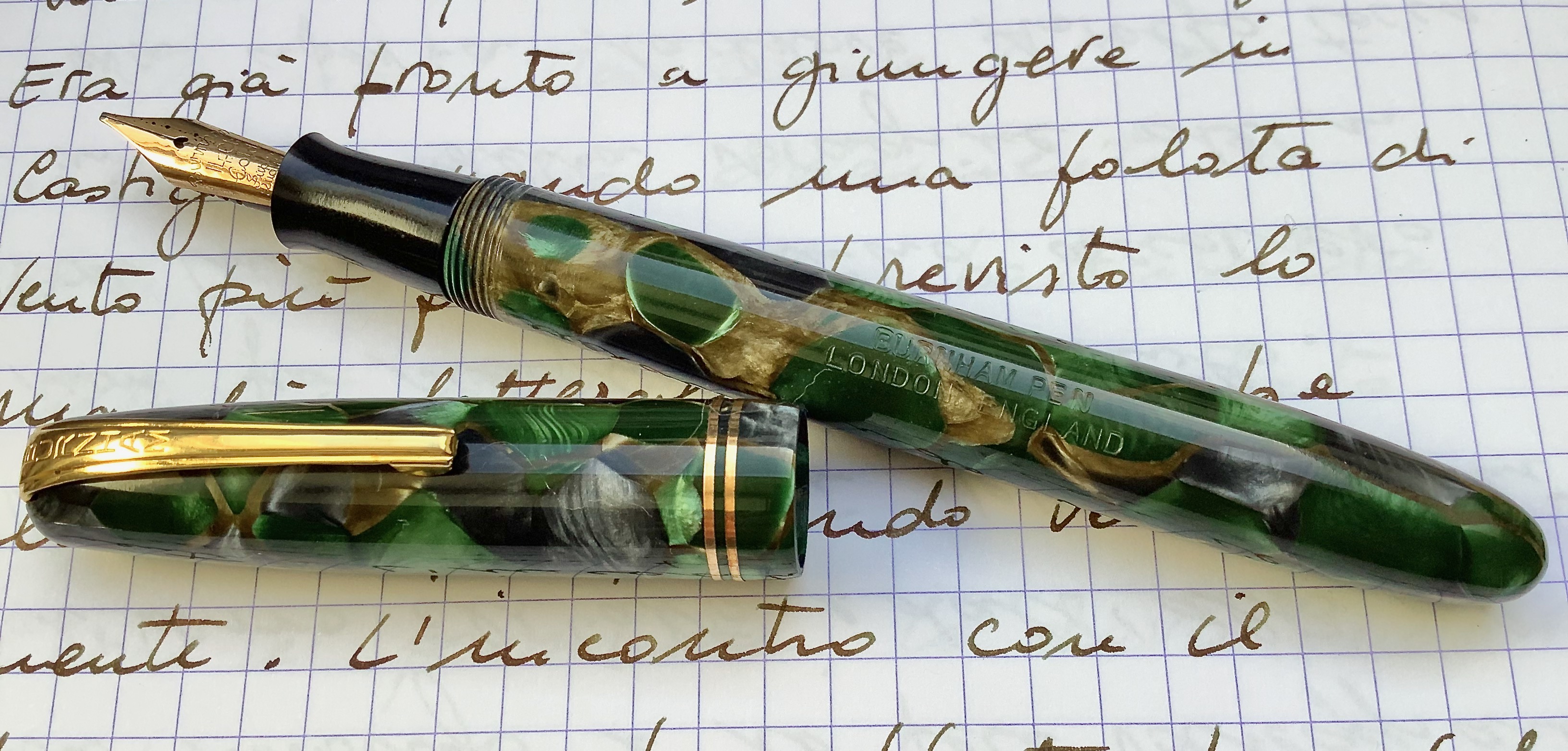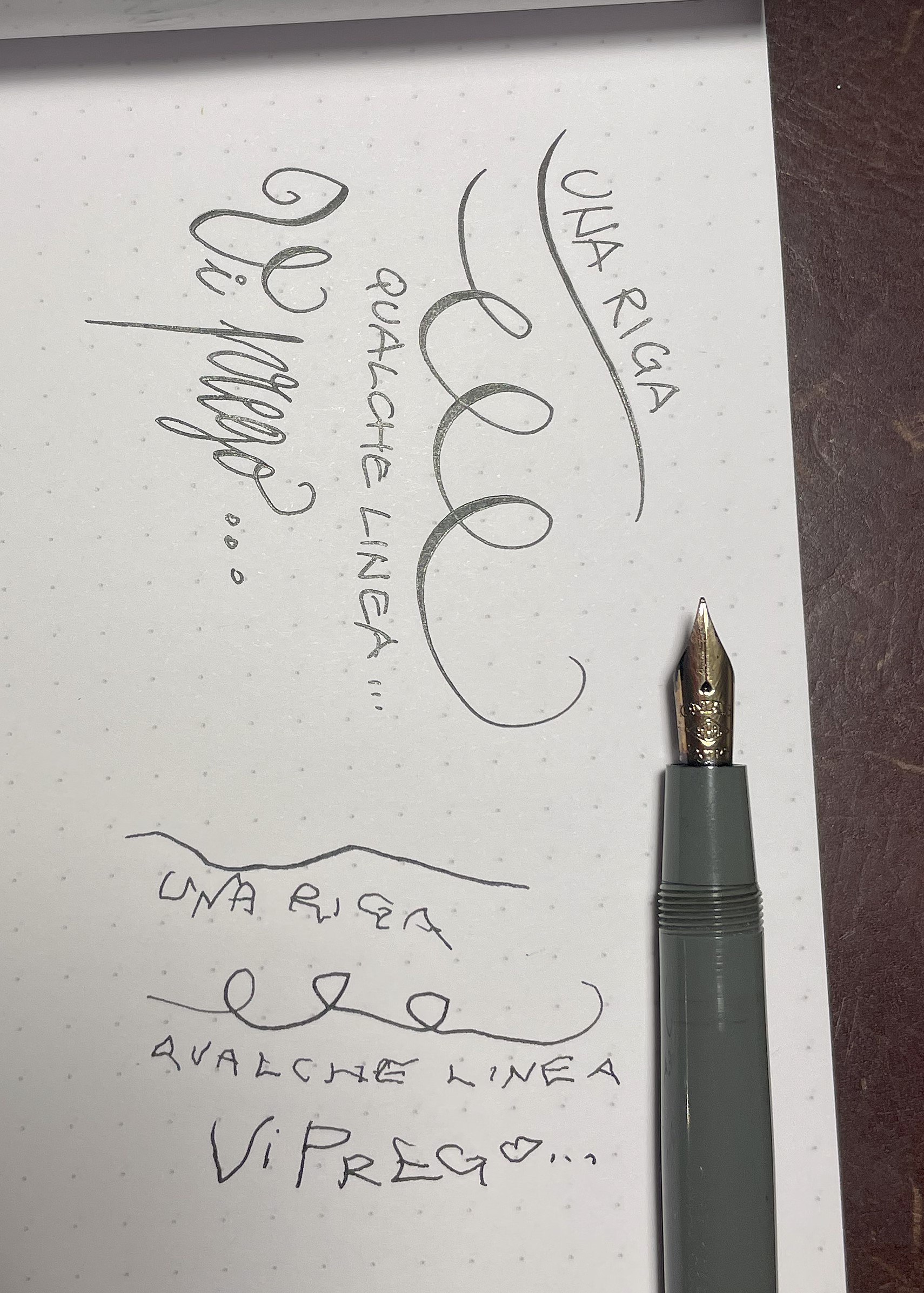 Il pennino molto scorrevole e per nulla rigido, ha un tratto molto particolare che sembra avvicinarsi ad un taglio italico.