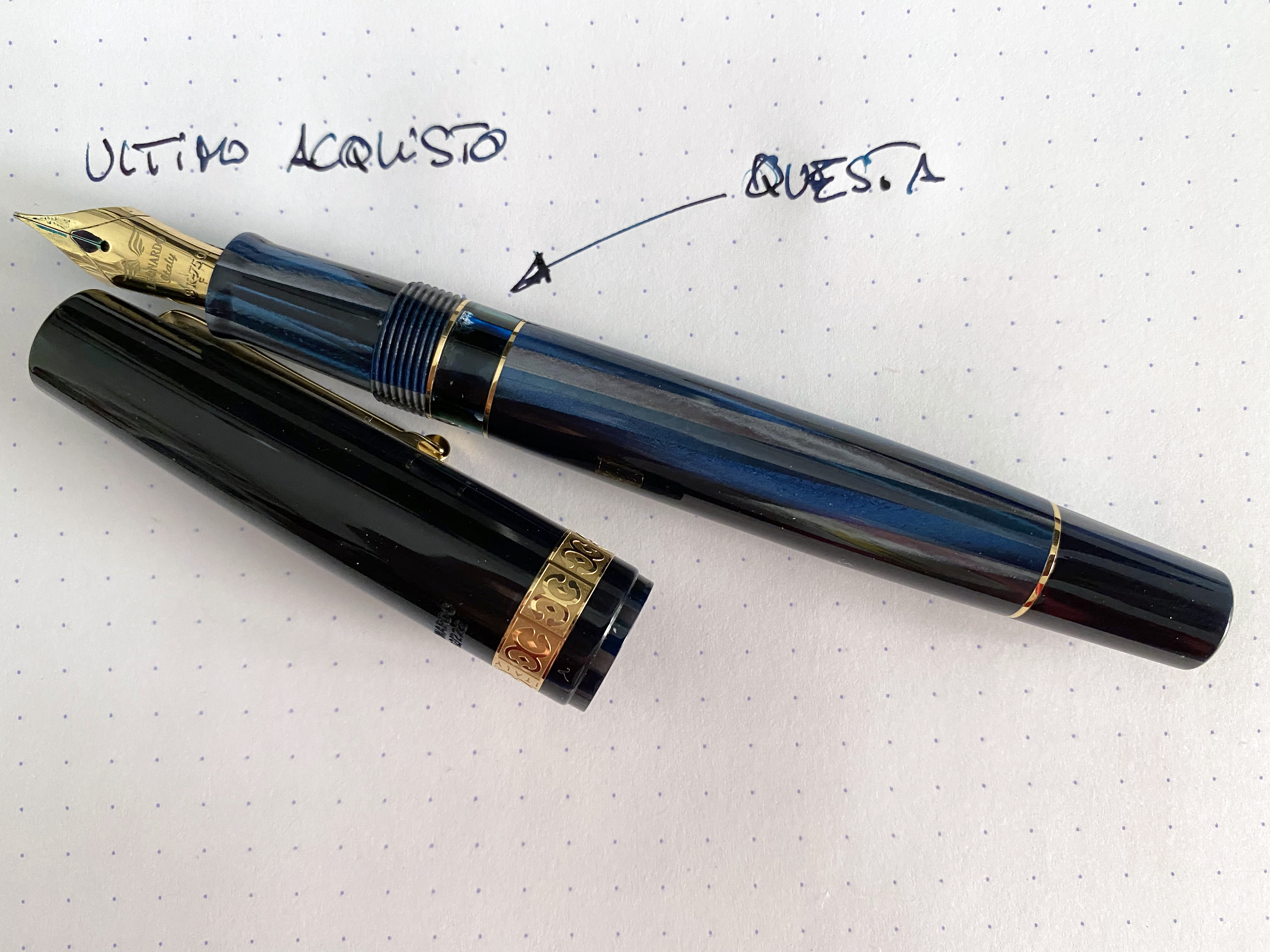 Ho preso il feed a due canali e normalmente uso un Iroshizuku che sicuramente aiuta. Devo dire che la penna funziona benissimo e il flusso mi sembra ben bilanciato (e abbondante). La uso nel quotidiano per titoli e scritte pseudo calligrafiche.Koten90 ha scritto: ↑domenica 10 luglio 2022, 9:08Eh si, davvero ottima la 912. Hai preso il feed a 2 o 3 canali? Io ho quello triplo e mi risulta un po’ troppo bagnato per scrittura normale, ma perfetto per il copperplateArchipat ha scritto: ↑sabato 9 luglio 2022, 19:06 Domanda impossibile; diciamo che se consideriamo l’inizio del 2022 forse la Pilot 912 a cui ho modificato l’alimentatore con uno in ebanite per eliminare il problema delle false partenze. Se consideriamo i tempi recenti la M805 mi piace molto. Ma siamo appena a metà anno, quindi è presto per fare bilanci….