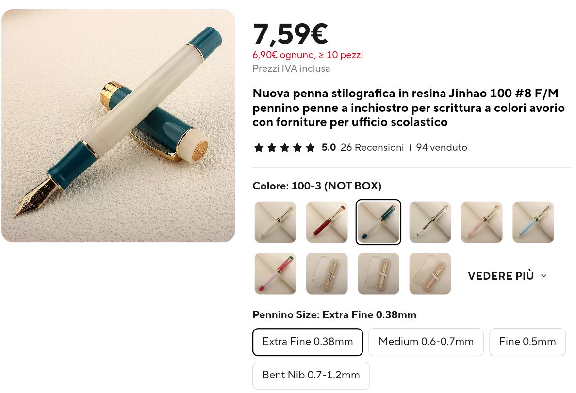 Infatto sono interessanti anche i pennini, solo che ho letto che girano delle Jinhao "false", con laccature scadenti. Bisogna leggere bene i feedback .
