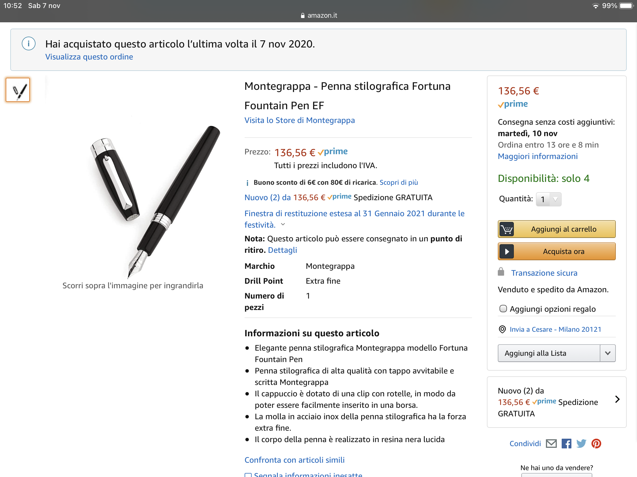 Presa 1 anno fa a 284 euro su amazzonia con pennino EF, mentre tutti gli altri la vendevano a 400/450 euri!