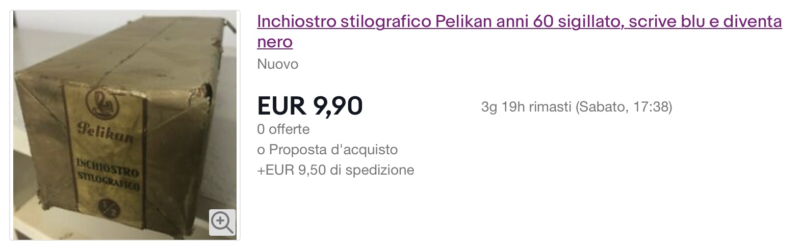 Non è scritto nelľinserzione ma forse è un ferrogallico. Vira dopo qualche secondo/minuto da blu ad un blu scuro, molto bruno. I blue-black spesso erano formulati così.