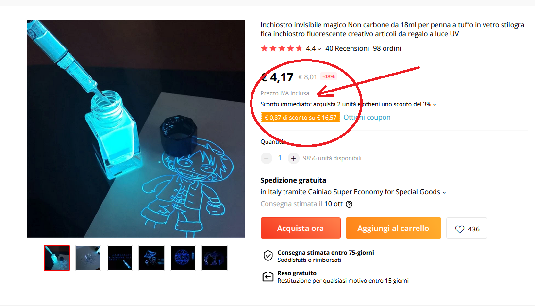 Chi compra abitualmente all’estero, anche in Inghilterra, dovrà fare quindi attenzione ad eventuali costi nascosti nel caso di prezzo troppo basso. Potrebbe dover pagar di più dopo, quando riceve la merce.