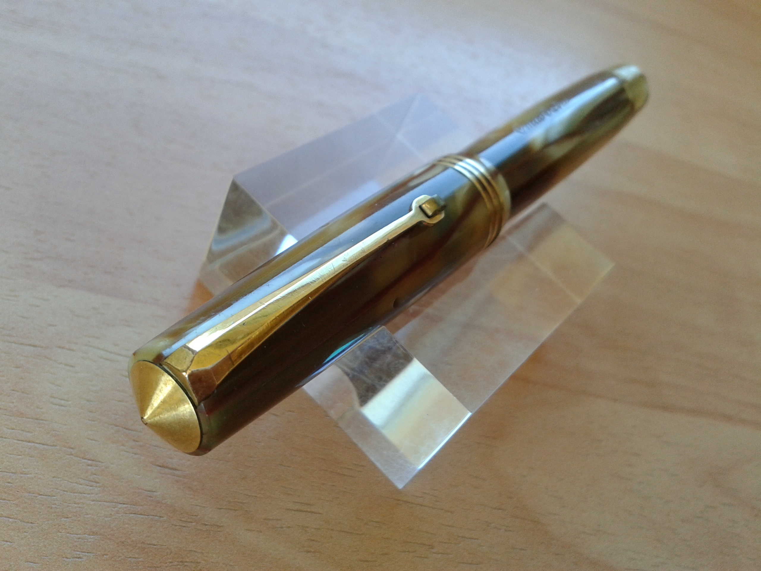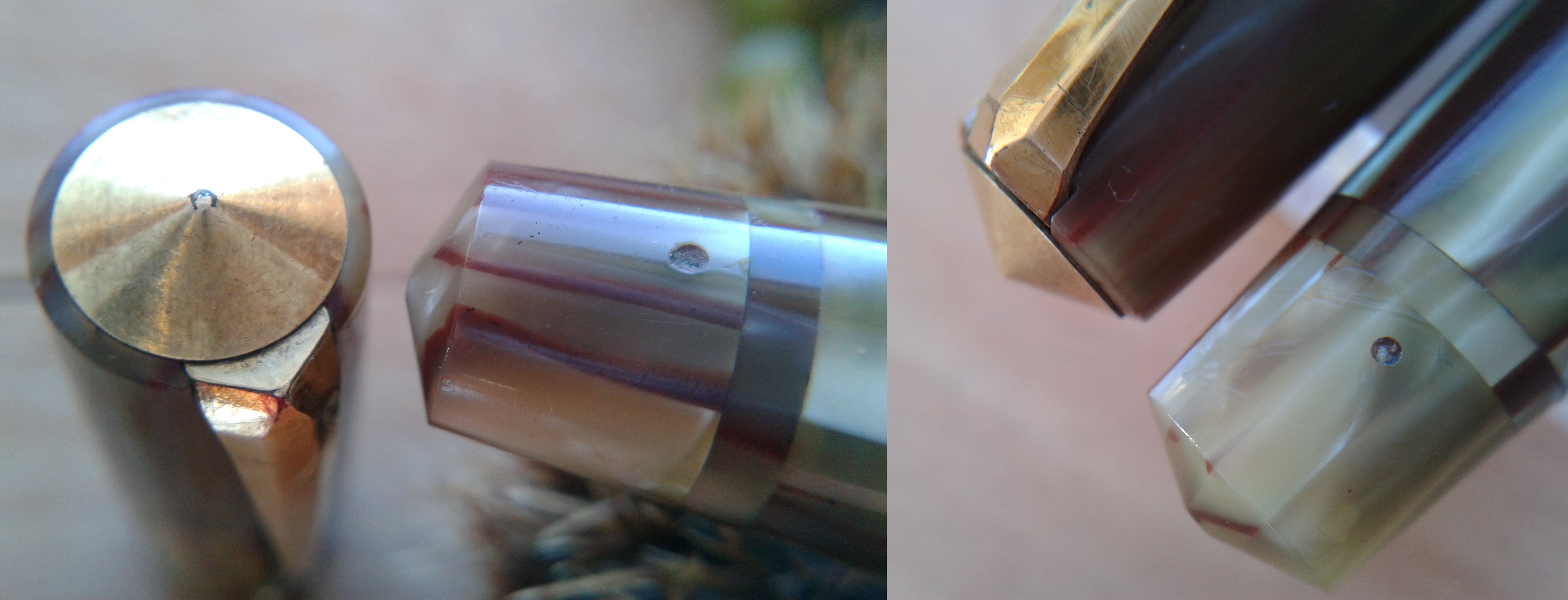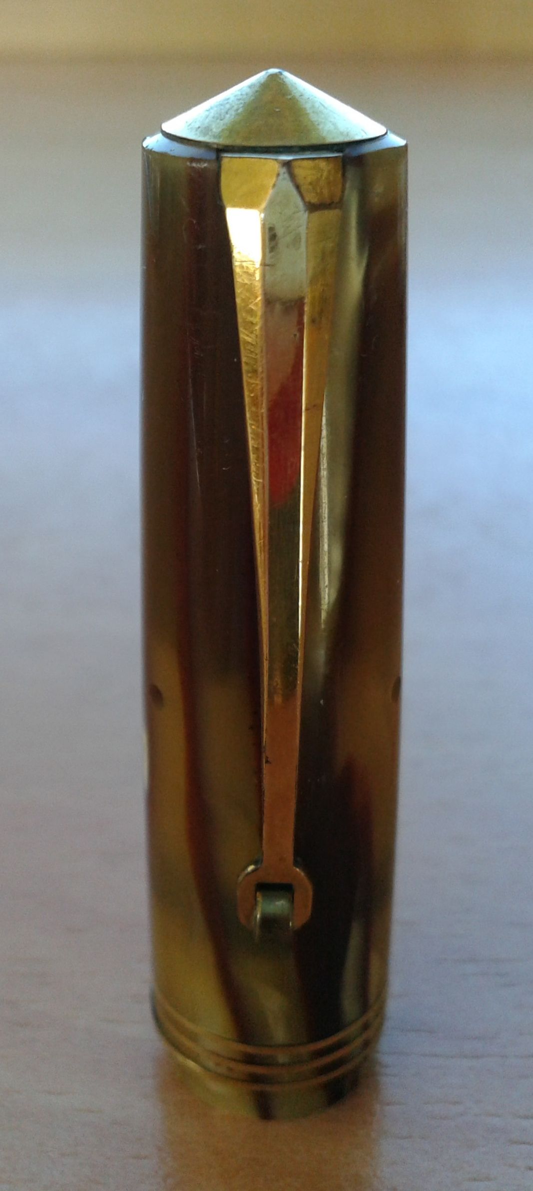 La testina conica in metallo dorato conferisce un aspetto marziale a quella che avrebbe dovuto essere solo una innocua penna da borsetta o da panciotto: