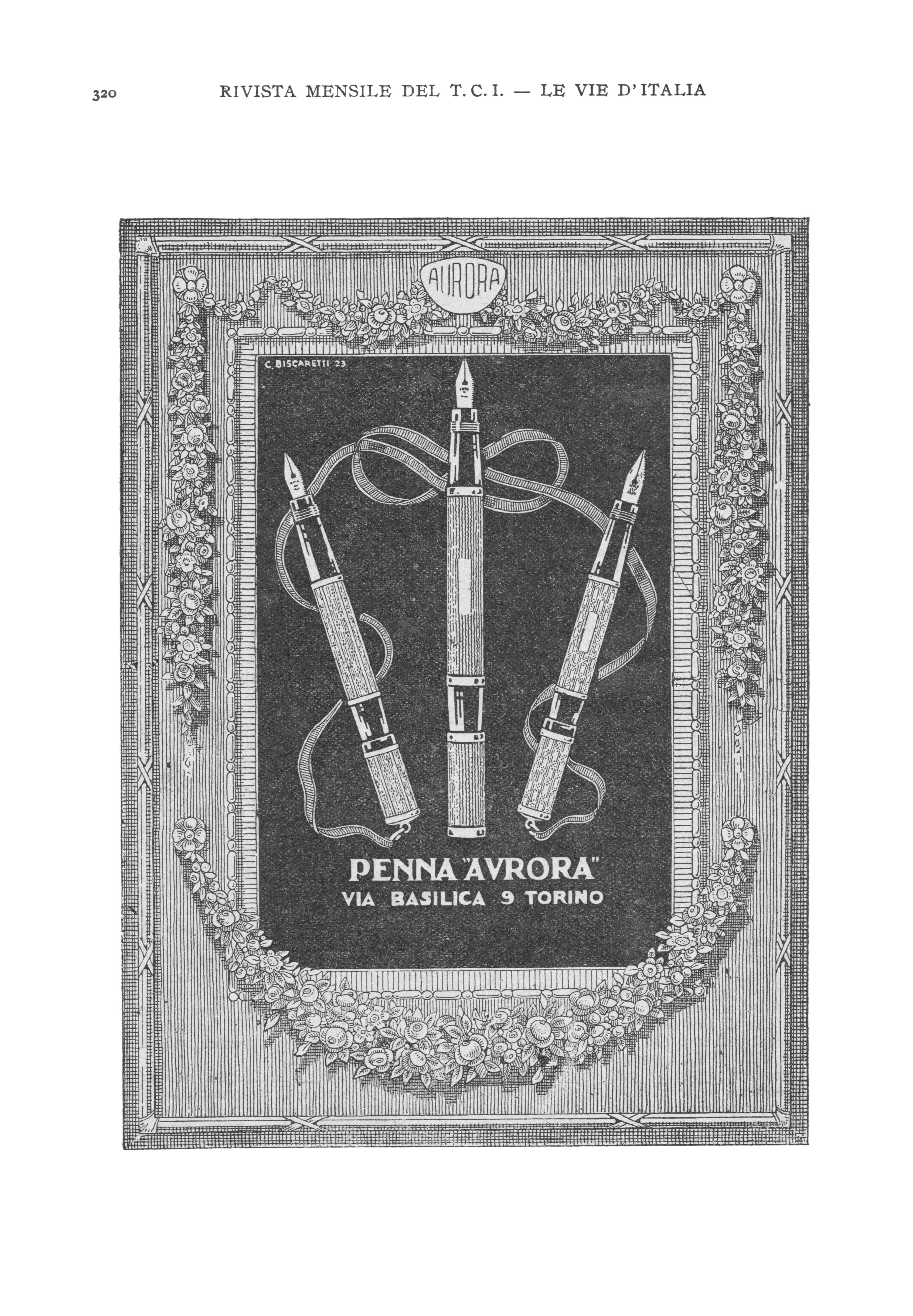 Giusto a metà degli anni 1920 Aurora pubblicizzava le RA "rivestite in metalli preziosi, ornate di smalti, incisioni e pietre preziose" e si proponeva credibilmente come marchio di lusso, con pubblicità raffinatissime ed opulente come la seguente del 1925 (firmata Biscaretti 1923):