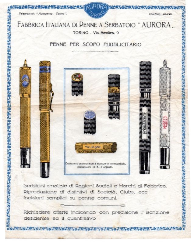 Per una panoramica dei modelli iniziali di Aurora, la gloriosa "Fabbrica Italiana Penne a Serbatoio" di Torino fondata subito dopo la I Guerra Mondiale nel 1919, si consulti il nostro formidabile Wiki al link già citato in precedenza: