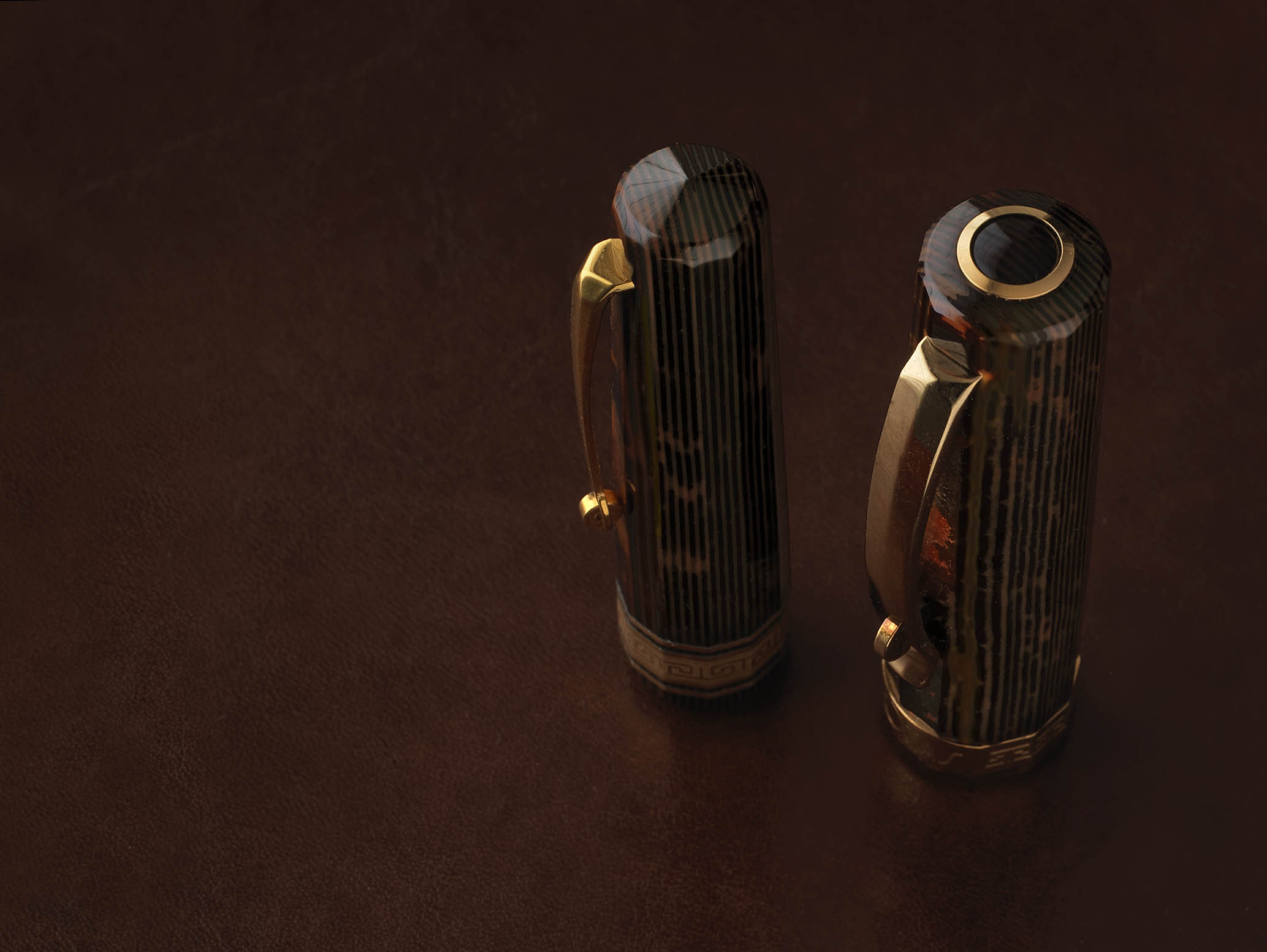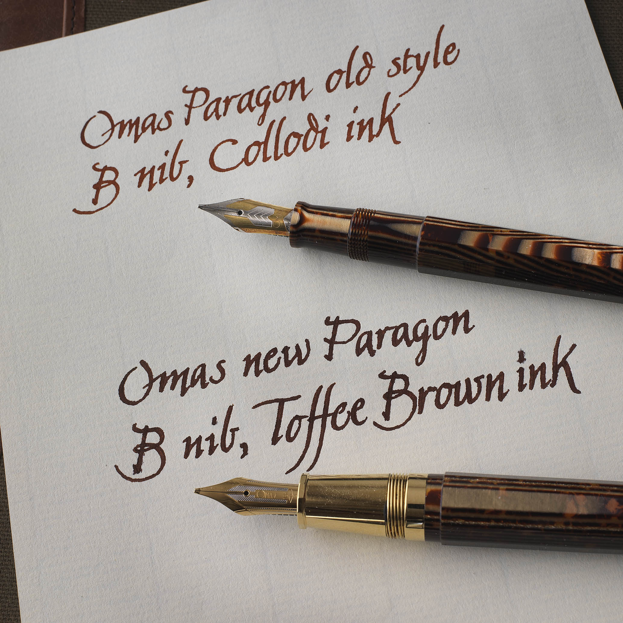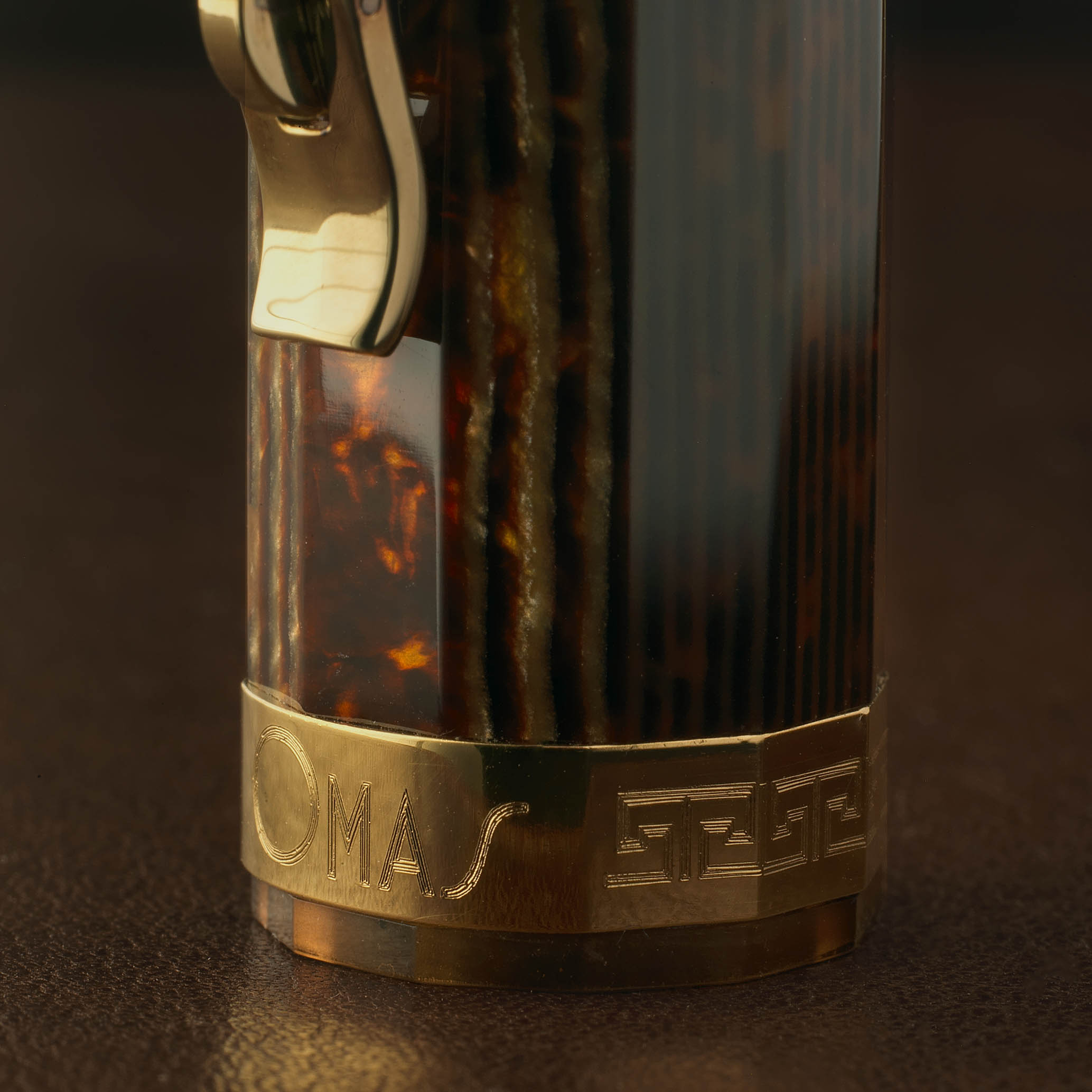 Non é rimasto molto che non sia già stato scritto a proposito della famosa penna inventata de Armando Simoni, la Omas Extra creata nel 1931 e ispirata allo stile greco classico, incluso il corpo sfaccettato dodecagonale (come le colonne doriche) e l’anello dorato sul tappo, impreziosito da un motivo a greca. La Paragon, introdotta con questo nome da Omas nel 1984 come la ammiraglia della linea Arte Italiana, era l’erede diretta delle Extra degli anni Trenta e Quaranta, via i modelli Gentlemen/Gentleman degli anni Sessanta sino agli Ottanta del secolo scorso. Nel 1991, Omas lanciò la sua Collezione Classica in Celluloide in quattro colori (incluso la Arco marrone o bronzo), alle quali si aggiunsero in seguito altri tre colori di celluloide. La produzione della Collezione Celluloide (che, oltre alla Paragon, includeva la Milord, la Dama e la Princess) terminò ufficialmente nell’anno 2000.