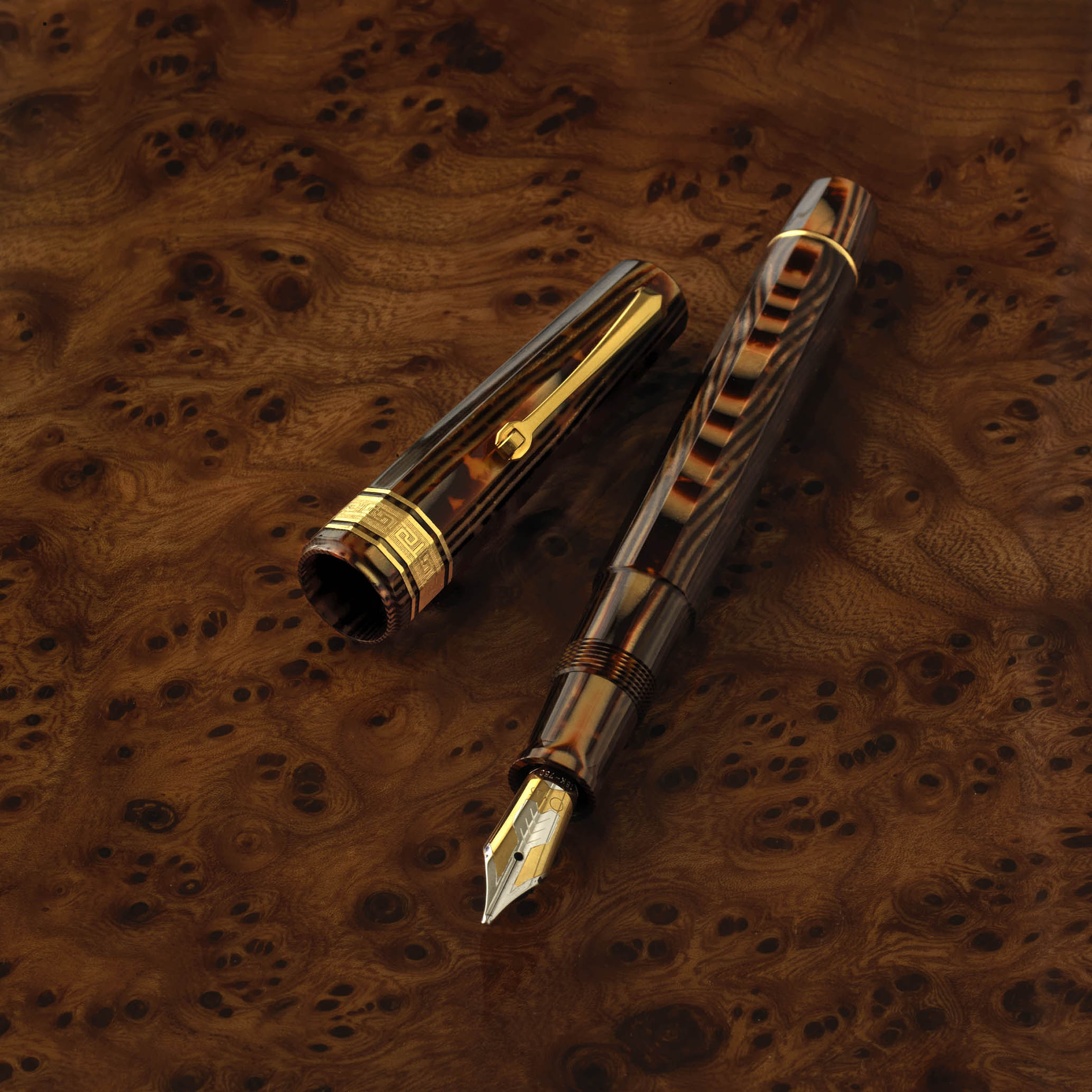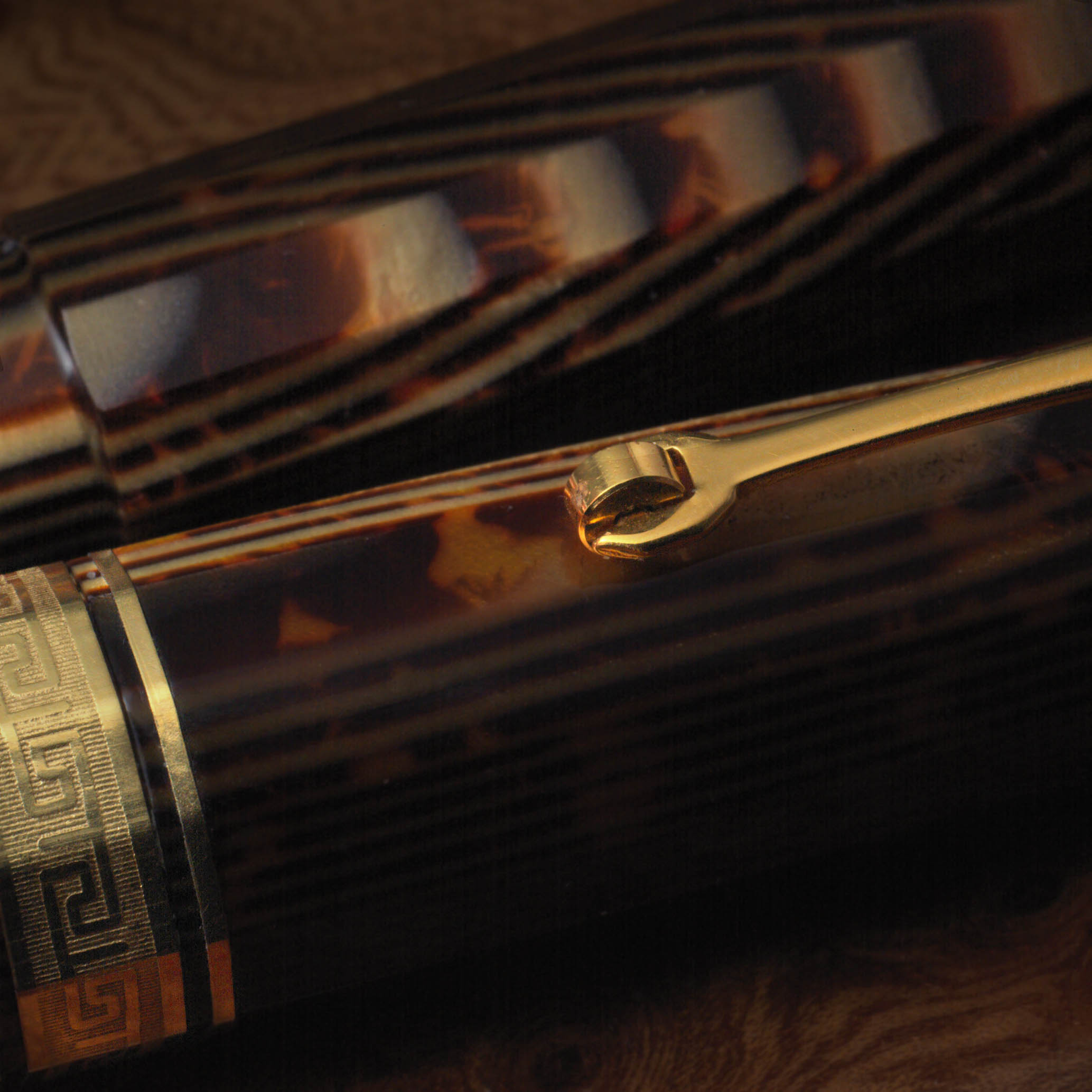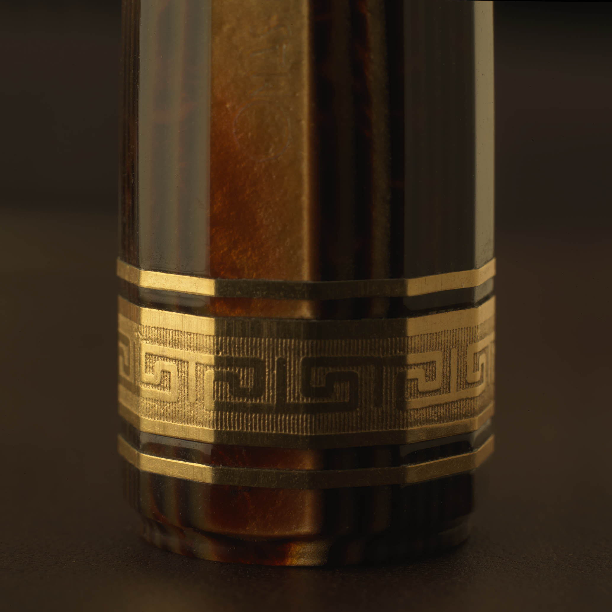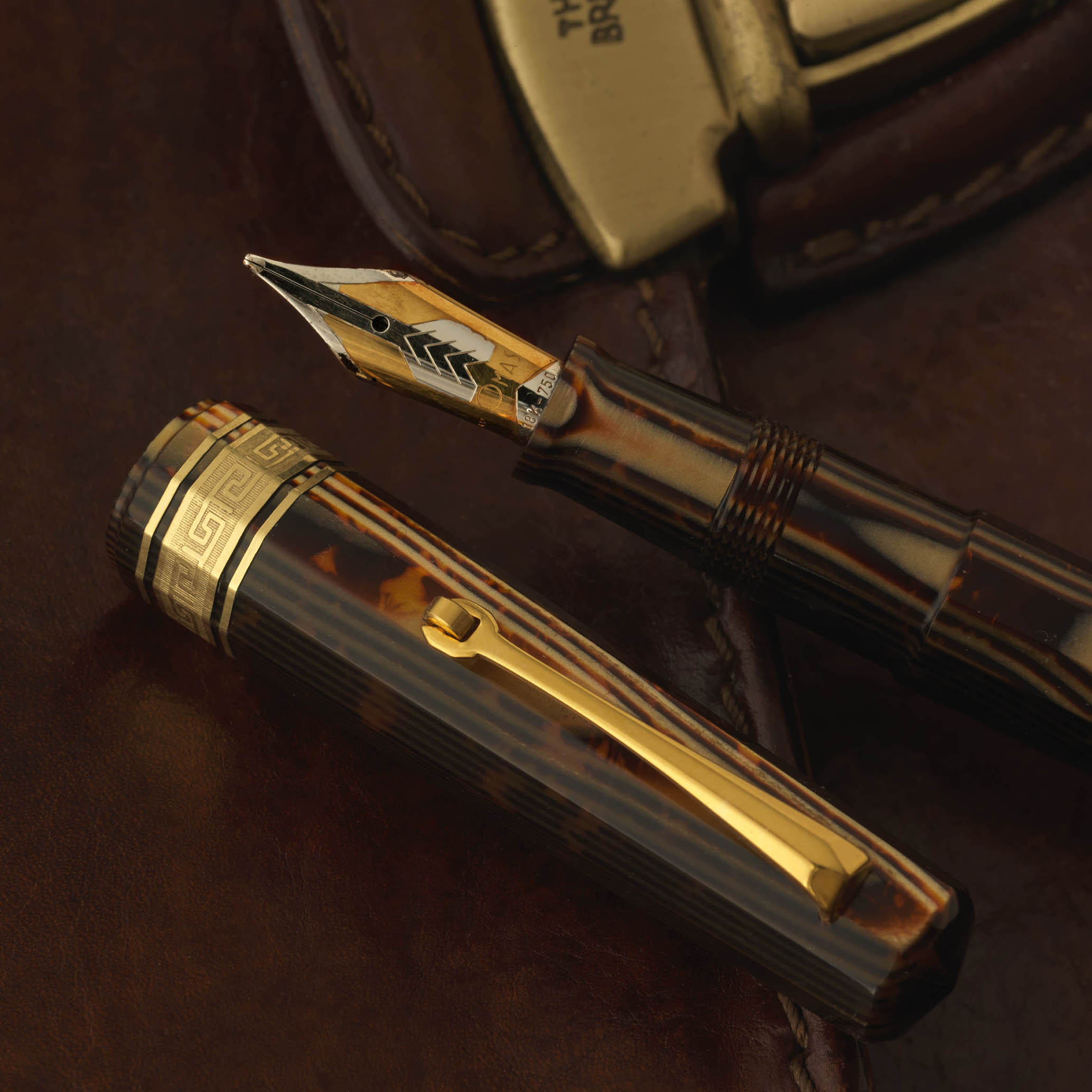 Non é rimasto molto che non sia già stato scritto a proposito della famosa penna inventata de Armando Simoni, la Omas Extra creata nel 1931 e ispirata allo stile greco classico, incluso il corpo sfaccettato dodecagonale (come le colonne doriche) e l’anello dorato sul tappo, impreziosito da un motivo a greca. La Paragon, introdotta con questo nome da Omas nel 1984 come la ammiraglia della linea Arte Italiana, era l’erede diretta delle Extra degli anni Trenta e Quaranta, via i modelli Gentlemen/Gentleman degli anni Sessanta sino agli Ottanta del secolo scorso. Nel 1991, Omas lanciò la sua Collezione Classica in Celluloide in quattro colori (incluso la Arco marrone o bronzo), alle quali si aggiunsero in seguito altri tre colori di celluloide. La produzione della Collezione Celluloide (che, oltre alla Paragon, includeva la Milord, la Dama e la Princess) terminò ufficialmente nell’anno 2000.