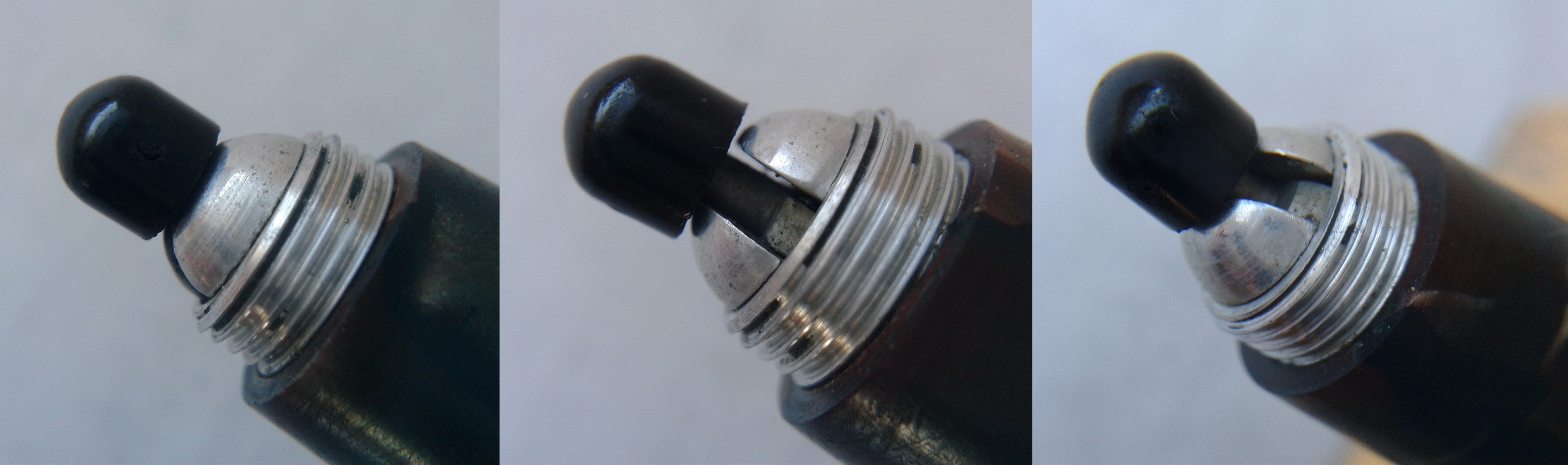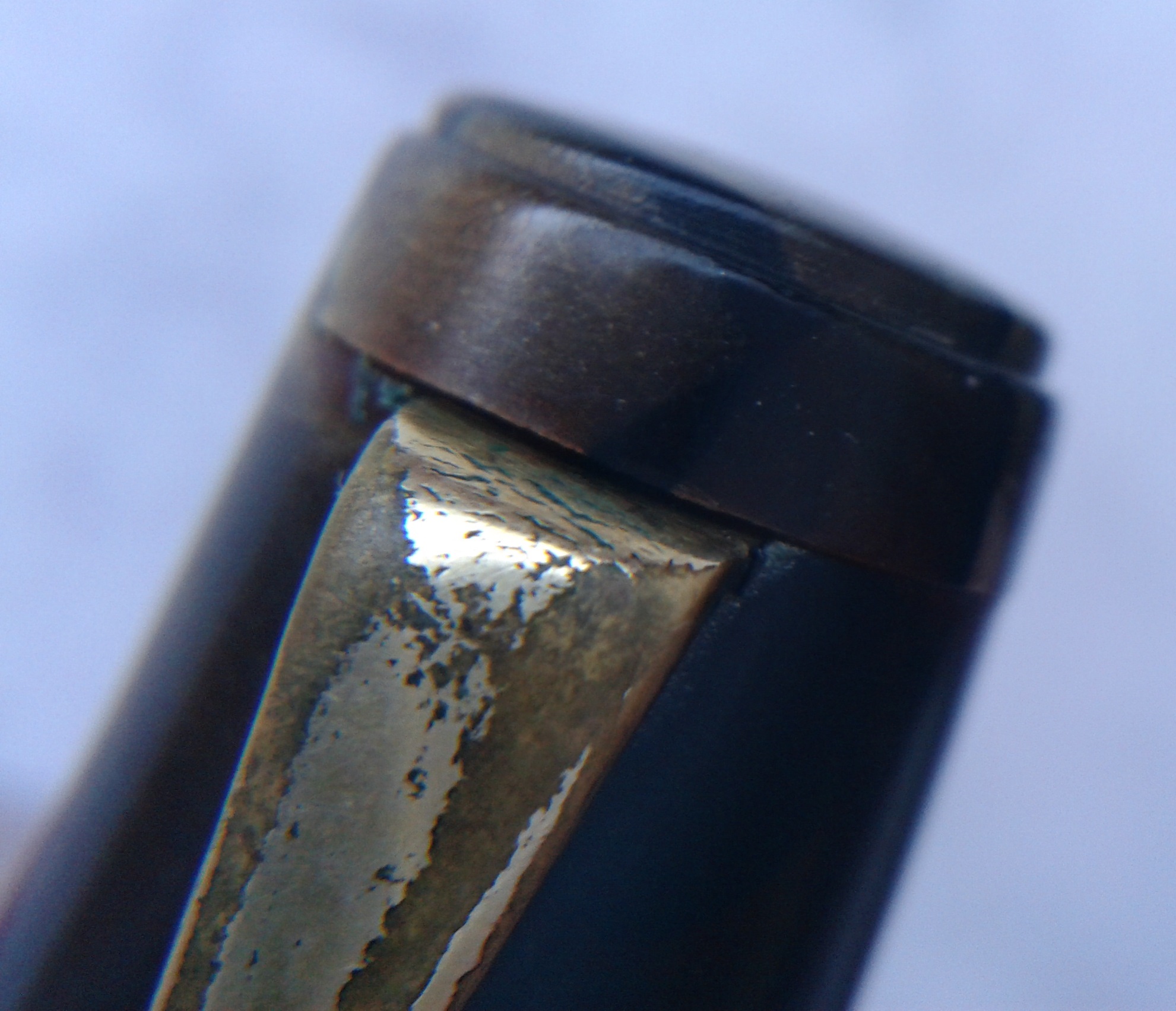 Per agevolare la manovrabilità, alla sommità della levetta è fissata una piccola capsula nera (in celluloide?).