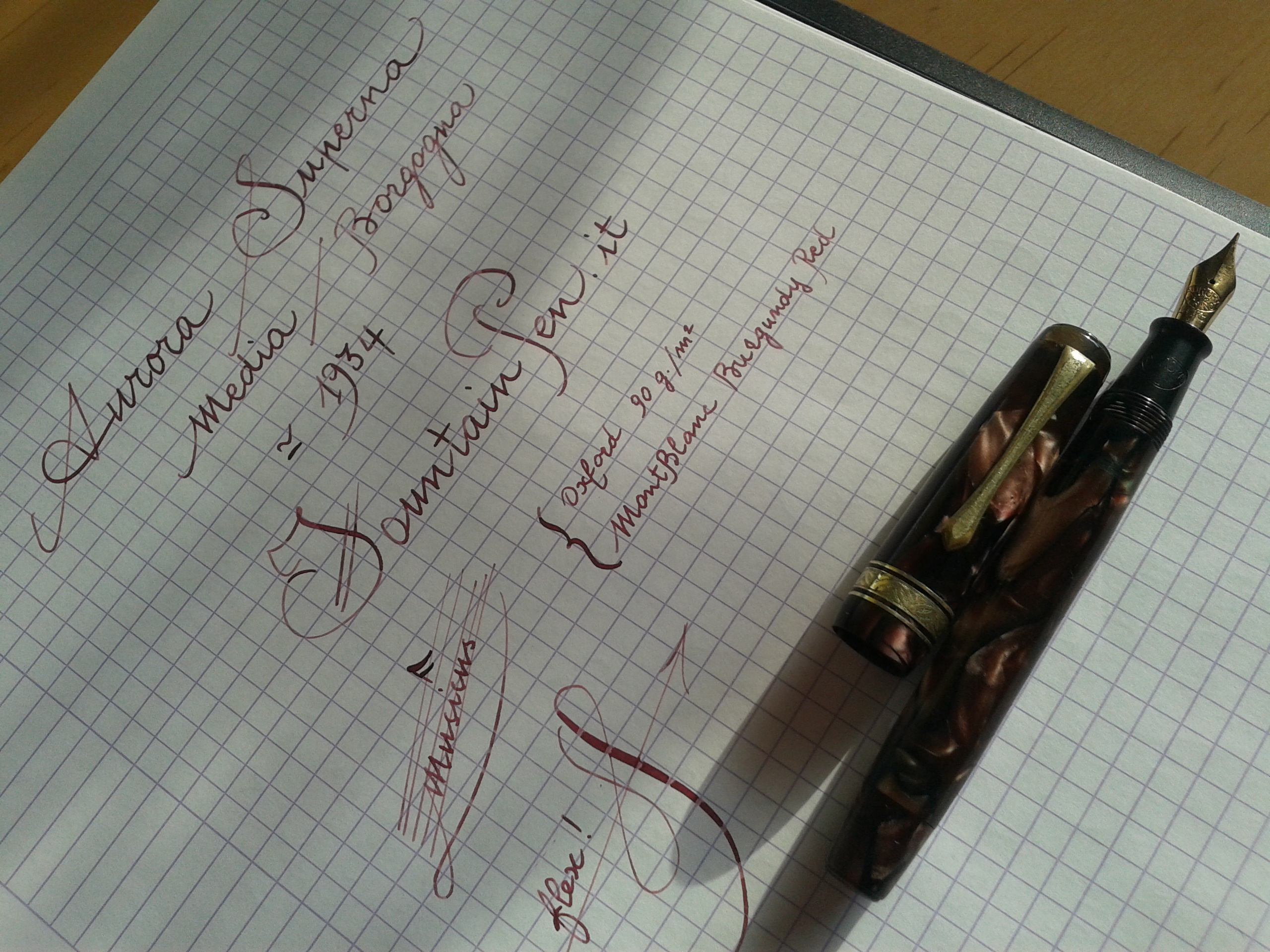 Il pennino, un F europeo, a mio avviso, è un Aurora della miglior qualità: sincero e reattivo, senza impuntamenti, flessuoso quanto basta per garantire comfort ed alte prestazioni.