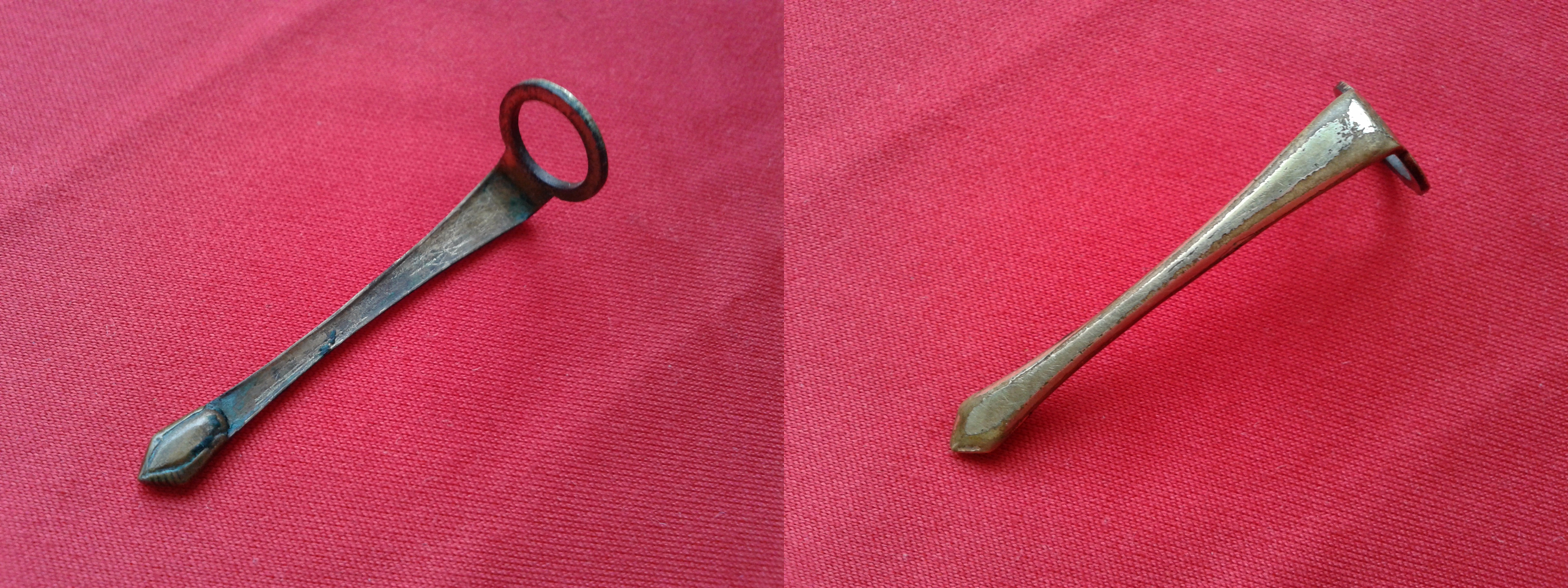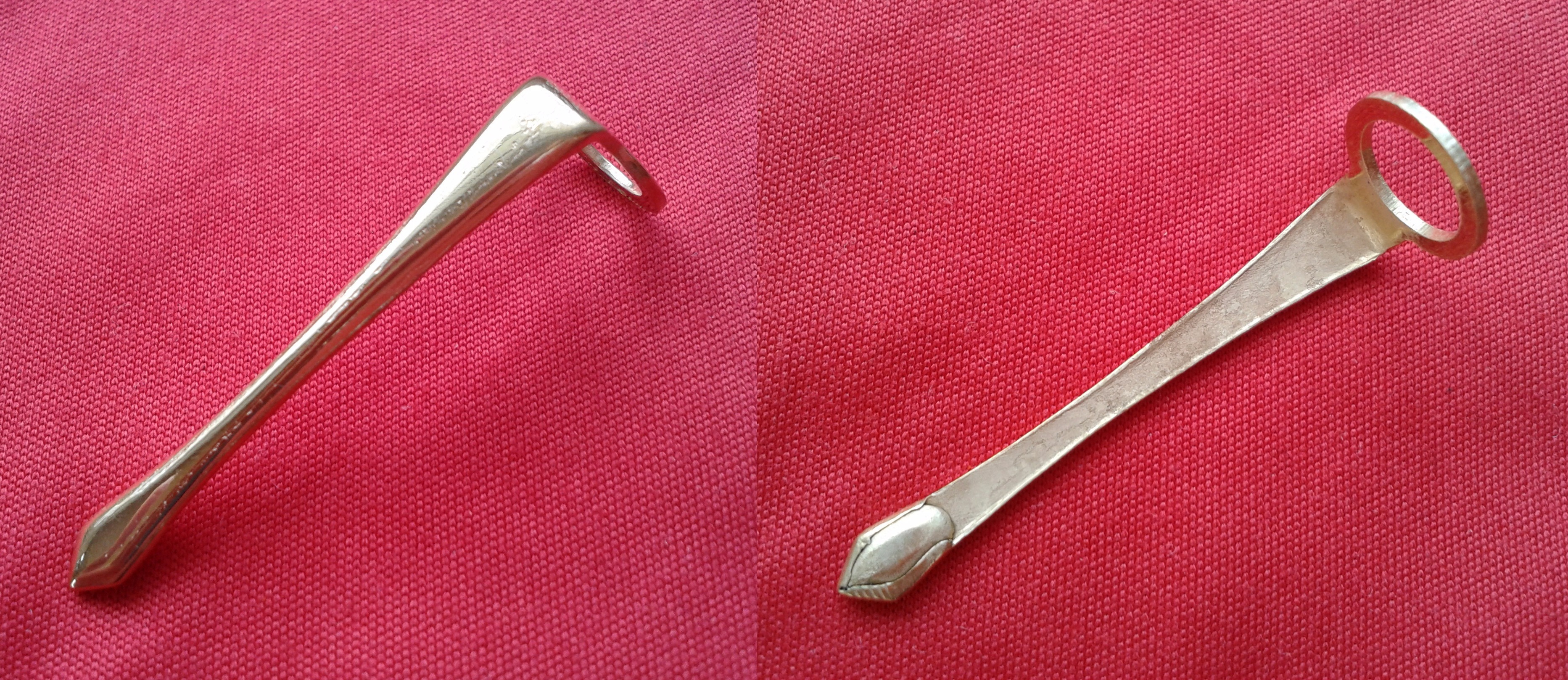 Il disegno del fermaglio è quello di uno stelo che simmetricamente prima si restringe e poi si allarga, per terminare in una punta di cravatta: clip davvero ben proporzionata ed elegante!
