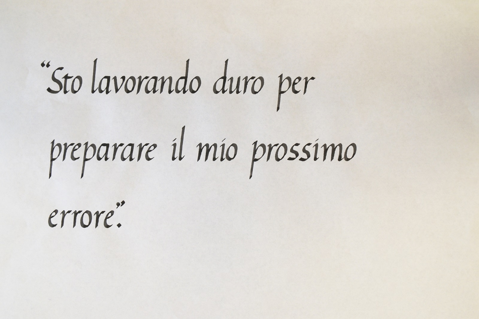 Ad esempio io non ho iniziato con un tratto grande ed invece partire con la Parallel Pen 3.8 sarebbe stato l'ideale per cogliere da subito tutti i difetti (pentita!). Poi non ho scelto una Cancelleresca o Italico che proponesse più tratti per costruire la singola lettera. L'Italico di Reynolds, che fa lettere in uno, due tratti è davvero difficile per me che oltretutto ero digiuna di stilografica da 38 anni. Ero “lievemente” consapevole del guaio in cui mi cacciavo ma mi ero innamorata (meno pentita perché ancora innamorata!).