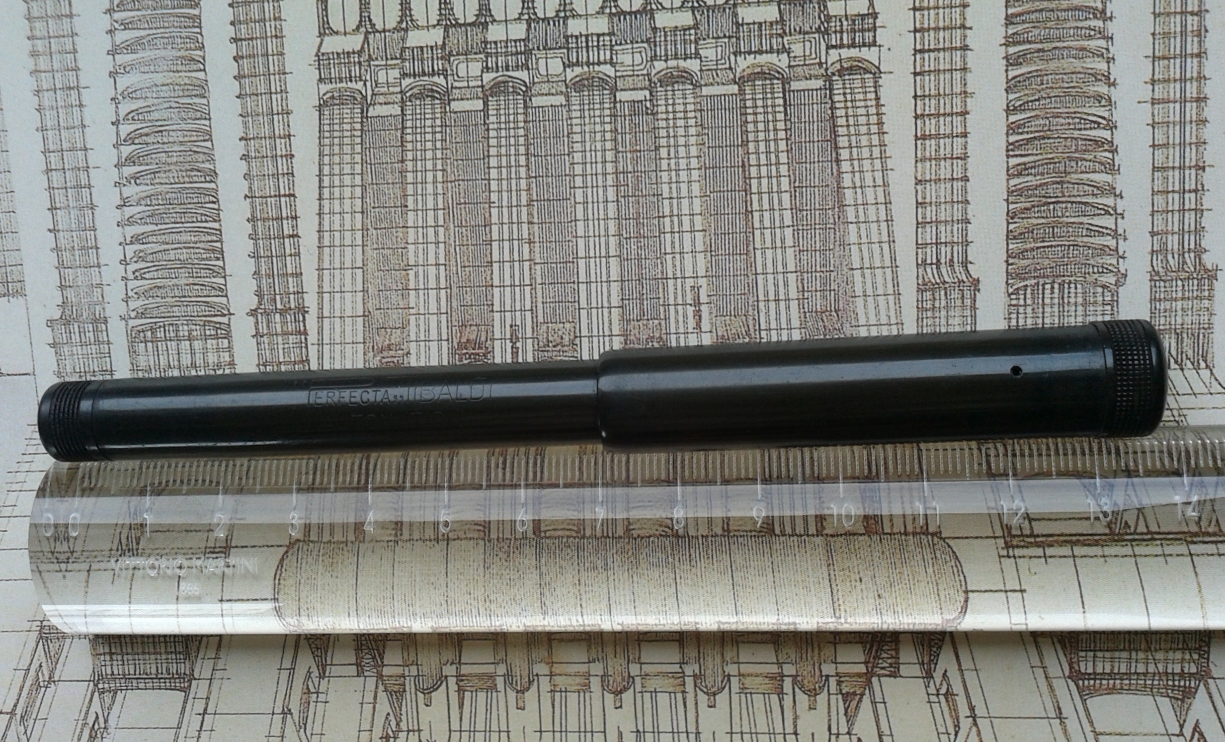 La decorazione, come qualche cosa di sovrapposto all'architettura, è un assurdo, e che soltanto dall'uso e dalla disposizione originale del materiale greggio o nudo o violentemente colorato, dipende il valore decorativo dell'architettura futurista…». Si dovette attendere la ripresa, dopo l’immane tragedia della Grande Guerra che aveva inevitabilmente prostrato le economie dei paesi belligeranti, ma già nel 1920 Tibaldi folgorò il mercato lanciando il modello “Perfecta”, l’unica penna stilografica italiana in grado di soddisfare, come vedremo nel corso della recensione, tutte le condizioni (im)poste dai Futuristi: d’altronde, cosa potrebbe esservi di più marinettianamente “Zang Tumb Tuuum” di una penna