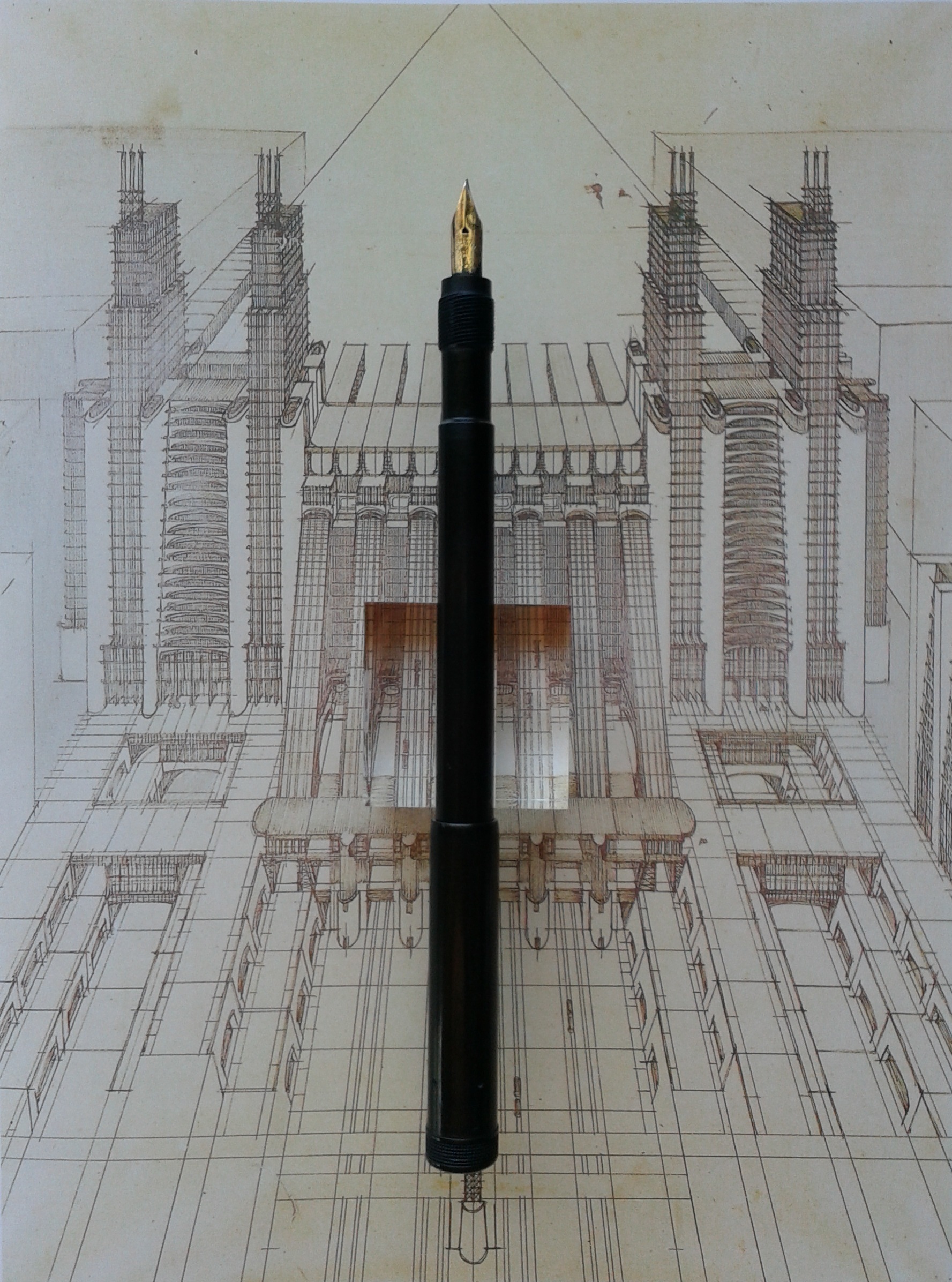 La casa di cemento di vetro di ferro senza pittura e senza scultura, ricca soltanto della bellezza congenita alle sue linee e ai suoi rilievi, straordinariamente “brutta” nella sua meccanica semplicità, alta e larga quanto più è necessario… deve sorgere sull’orlo di un abisso tumultuante: la strada, la quale non si stenderà più come un soppedaneo al livello delle portinerie, ma si sprofonderà nella terrà per parecchi piani, che accoglieranno il traffico metropolitano e saranno congiunti per transiti necessari, da passerelle metalliche e da velocissimi tapis roulants…» Una penna autenticamente “futurista”, oggetto della presente ricerca, sarebbe quindi dovuta nascere dalla scienza (dalla tecnologia sviluppata nell’industria) ed essere concepita in base ai medesimi principi stilistici enunciati nel Manifesto: