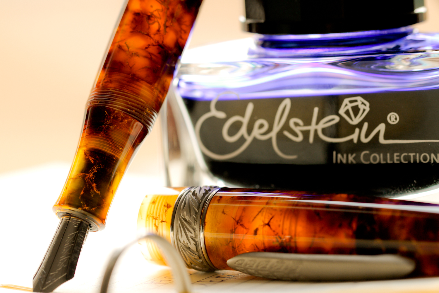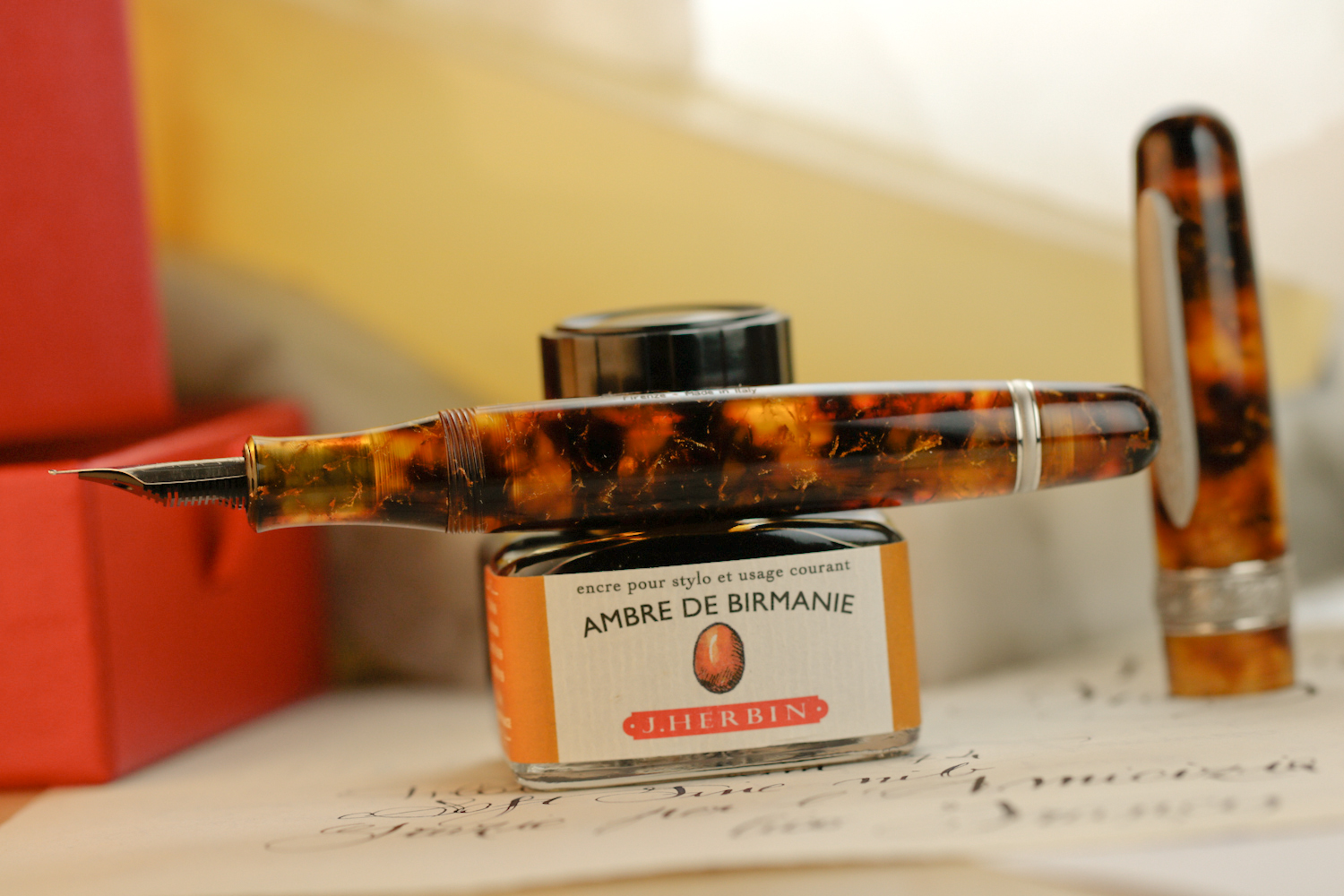 il pennino è particolare, ma ci stà secondo me, offre un bel contrasto con il colore ambra del corpo... Davvero bella !!!