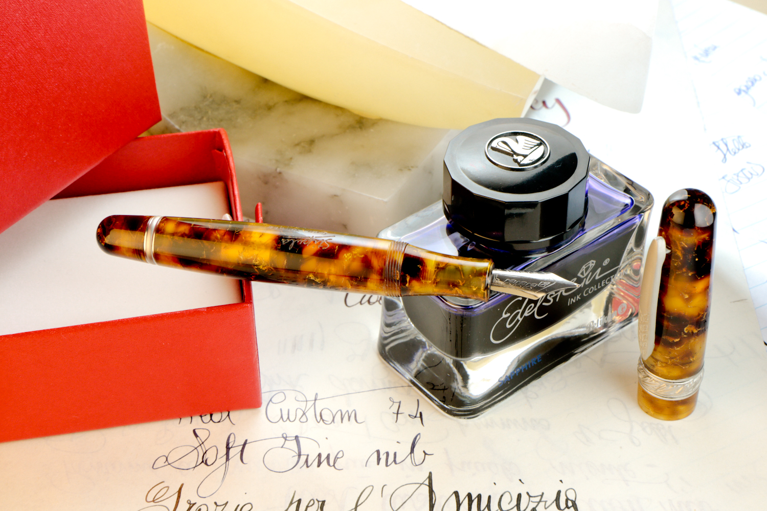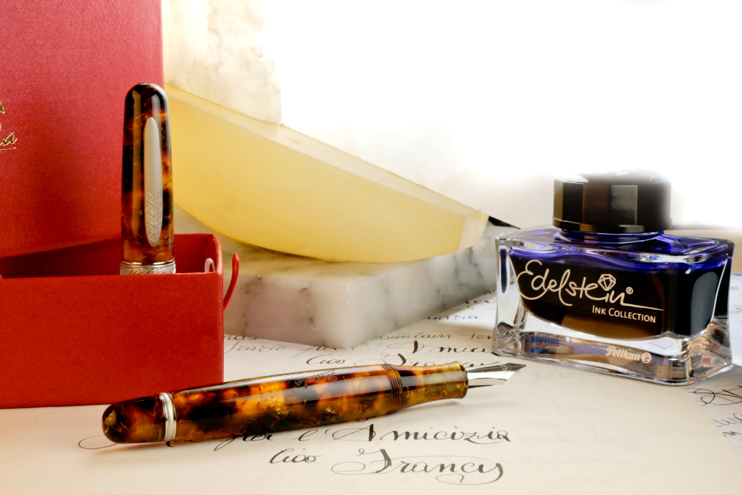 sabato mattina ( quasi per caso ) ho trovato questa Stipula Etruria Ambra etichettata come una stilografica orami fuori produzione e con un prezzo molto speciale.